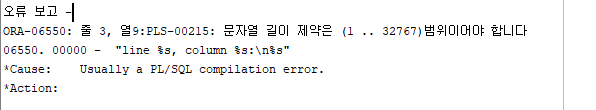 'PLS-00215 문자열 길이 제약은 (1 .. 32767)범위이어야 합니다.'