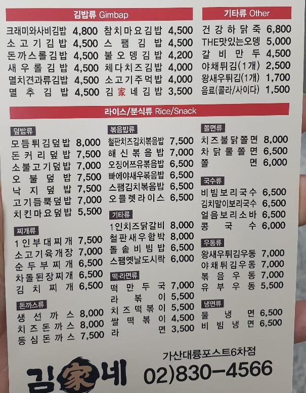 [가산디지털단지] 김가네 - 라볶이, 김가네김밥