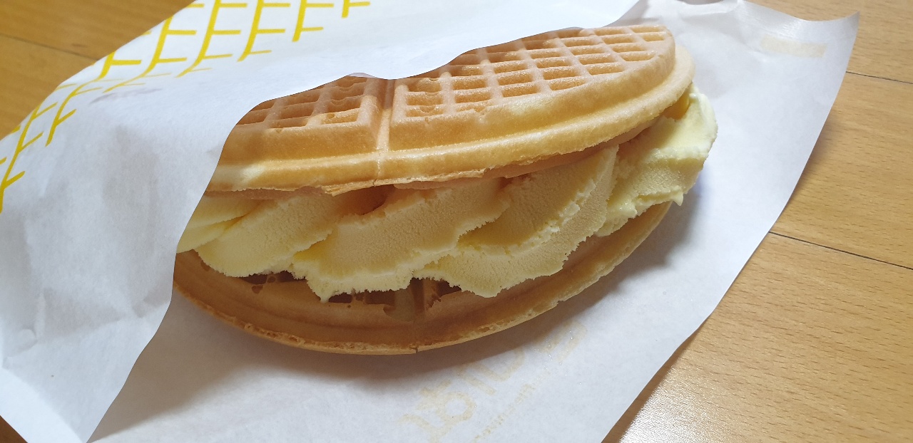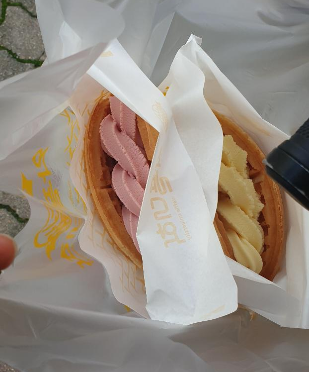 바닐라보다는 딸기가 저 맛있더군요. 반으로 쪼갤 때 와플 접힌쪽으로 쪼개니 깔끔하게 쪼개지더군요.