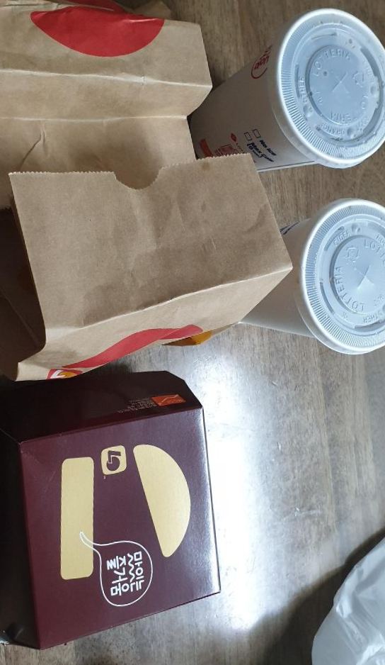 오늘 모더나 2차 접종을 맞고 집에 오는 길 롯데리아에 들려서 햄버거를 포장해왔습니다.