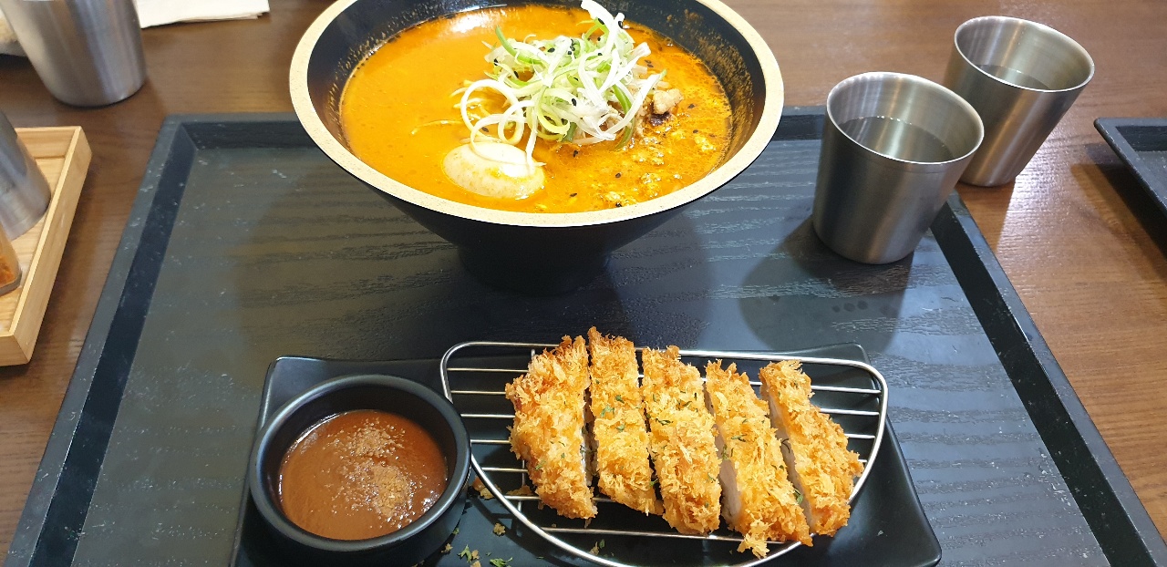 카라미소라멘은 탄탄멘보다 맵고 얼큰했어요. 깨가 들어간 라면은 처음이네요.