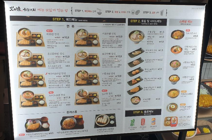 가산디지털단지역 근처 롯데아웃렛 3층에 있는 히노아지라는 라멘집에서 점심을 먹었습니다.
