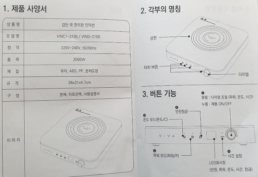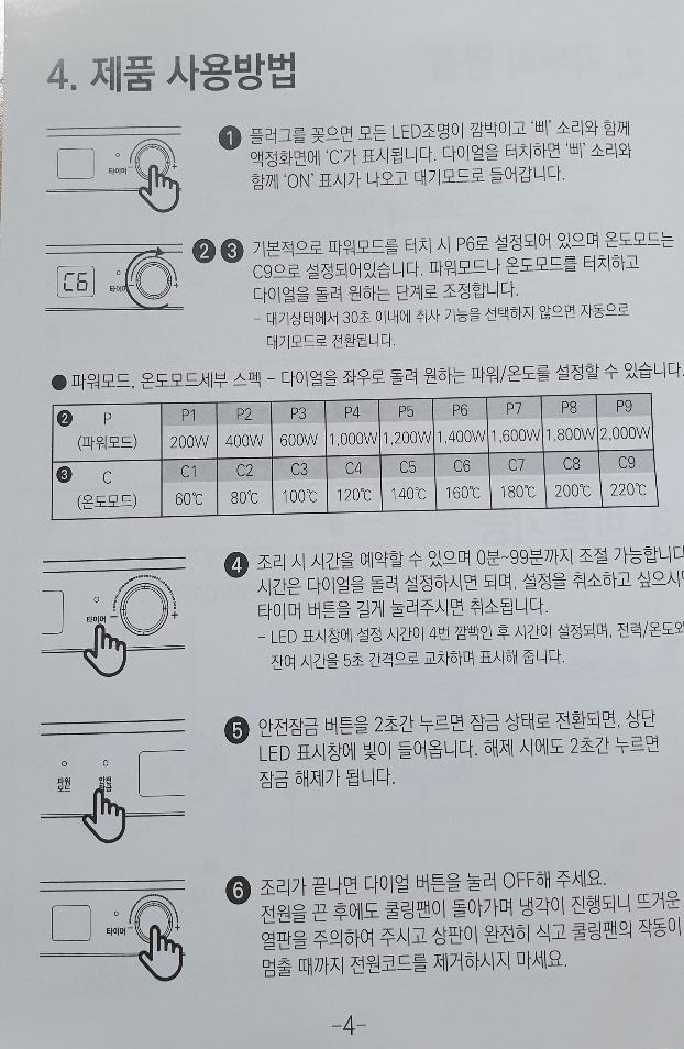 제품설명서도 보기 편하게 생겼습니더. 온도 모드와 파워모드가 있네요.