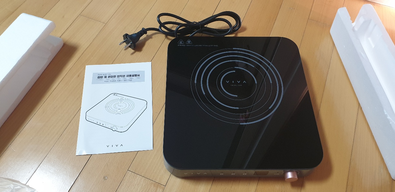 전골 같은걸 식탁에서 먹을 때 휴대용 가스버너를 쓰다가 인덕션을 하나 사야지 생각하다가 비스비바라는 업체의 '감탄쿡 편리한 인덕션' 다크 그레이 제품을 구매했습니다.