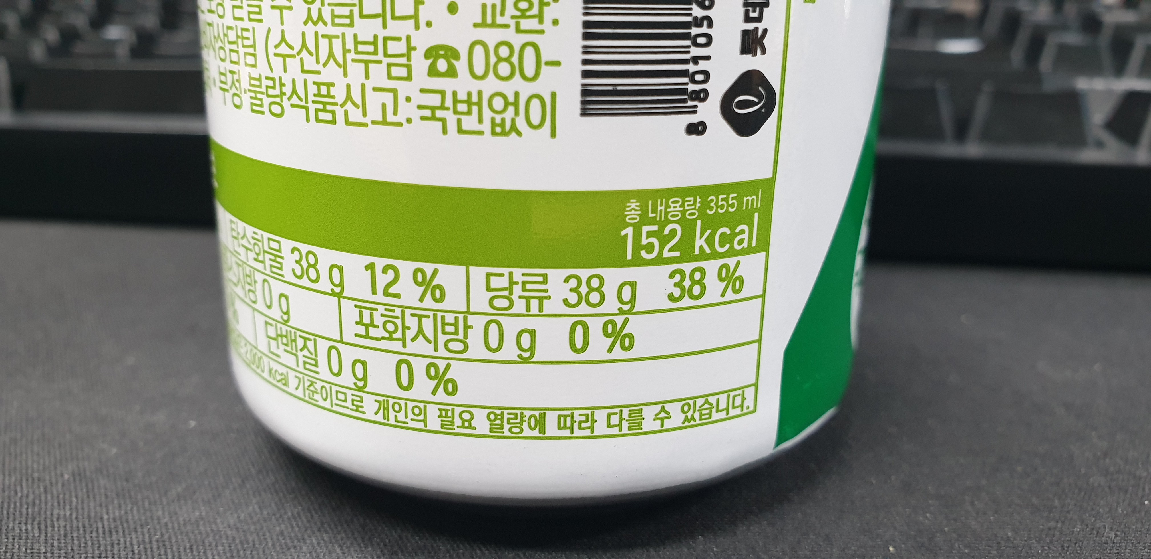152 칼로리네요. 뭐 칼로리 신경쓰면 사이다는 못마시죠. ㅎㅎ