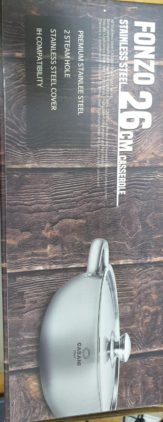 인덕션 전골냄비인 까사니 FONZO 냄비 26cm를 구매했습니다. 인덕션에서도 일반 가스레인지에서도 사용가능한 제품입니다.
