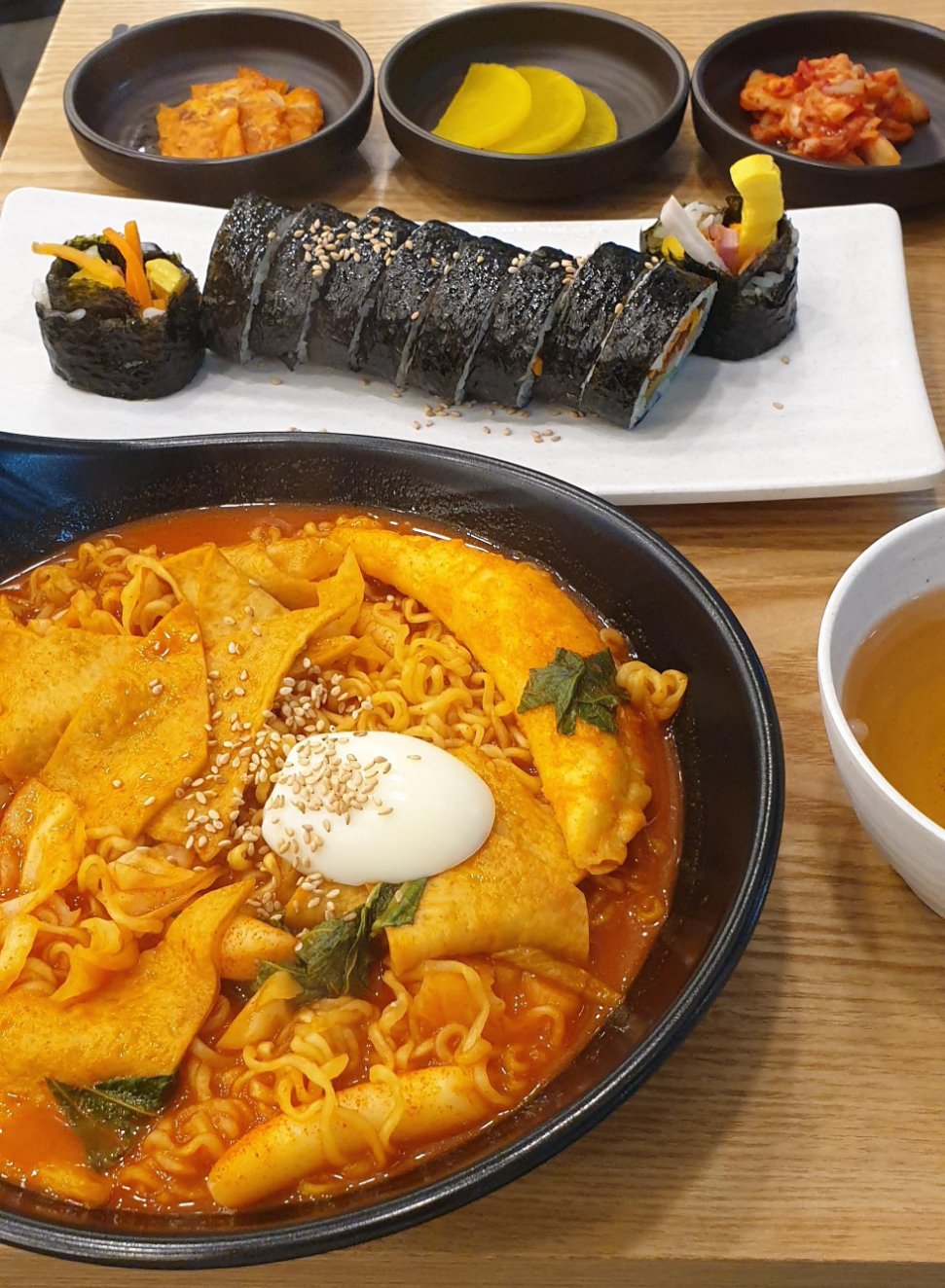 점심으로 김가네에서 라볶이와 김가네김밥(기본 김밥)을 먹었습니다.
