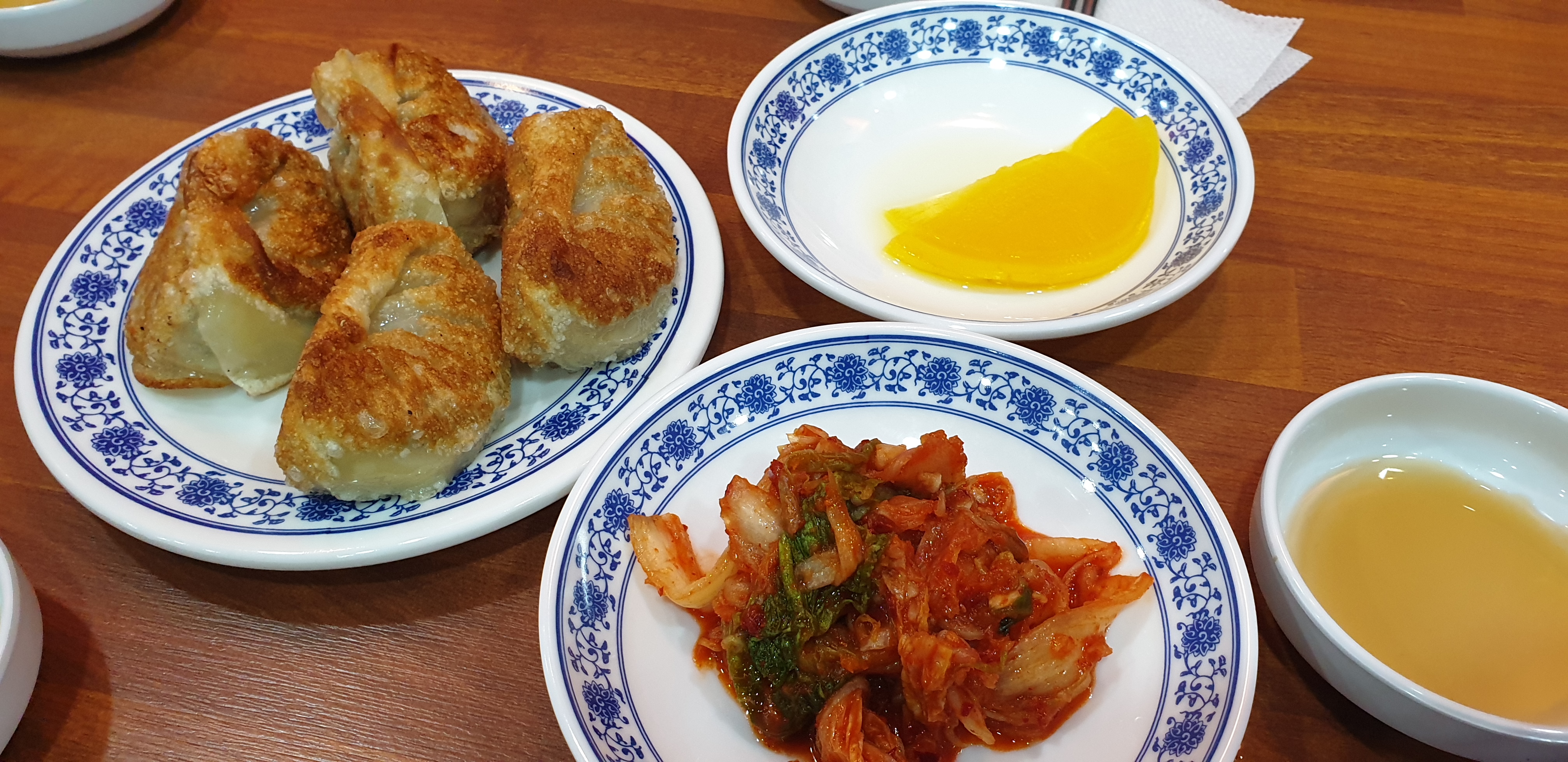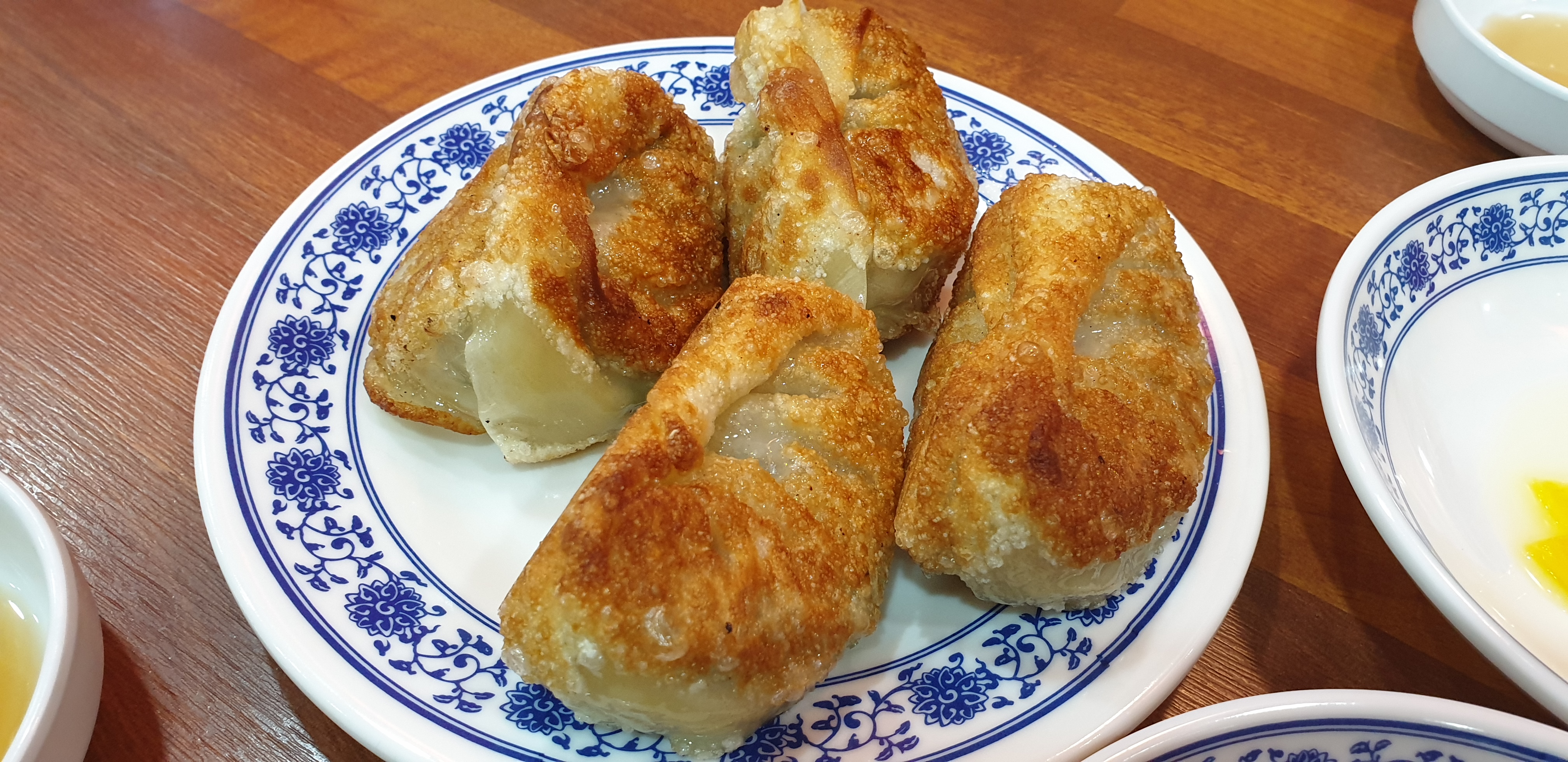 군만두는 4개에 6000원 입니다. 한 개만 따로 주문도 가능하고 절반만 주문도 가능하다고 합니다. 바삭한 게 맛있었어요.