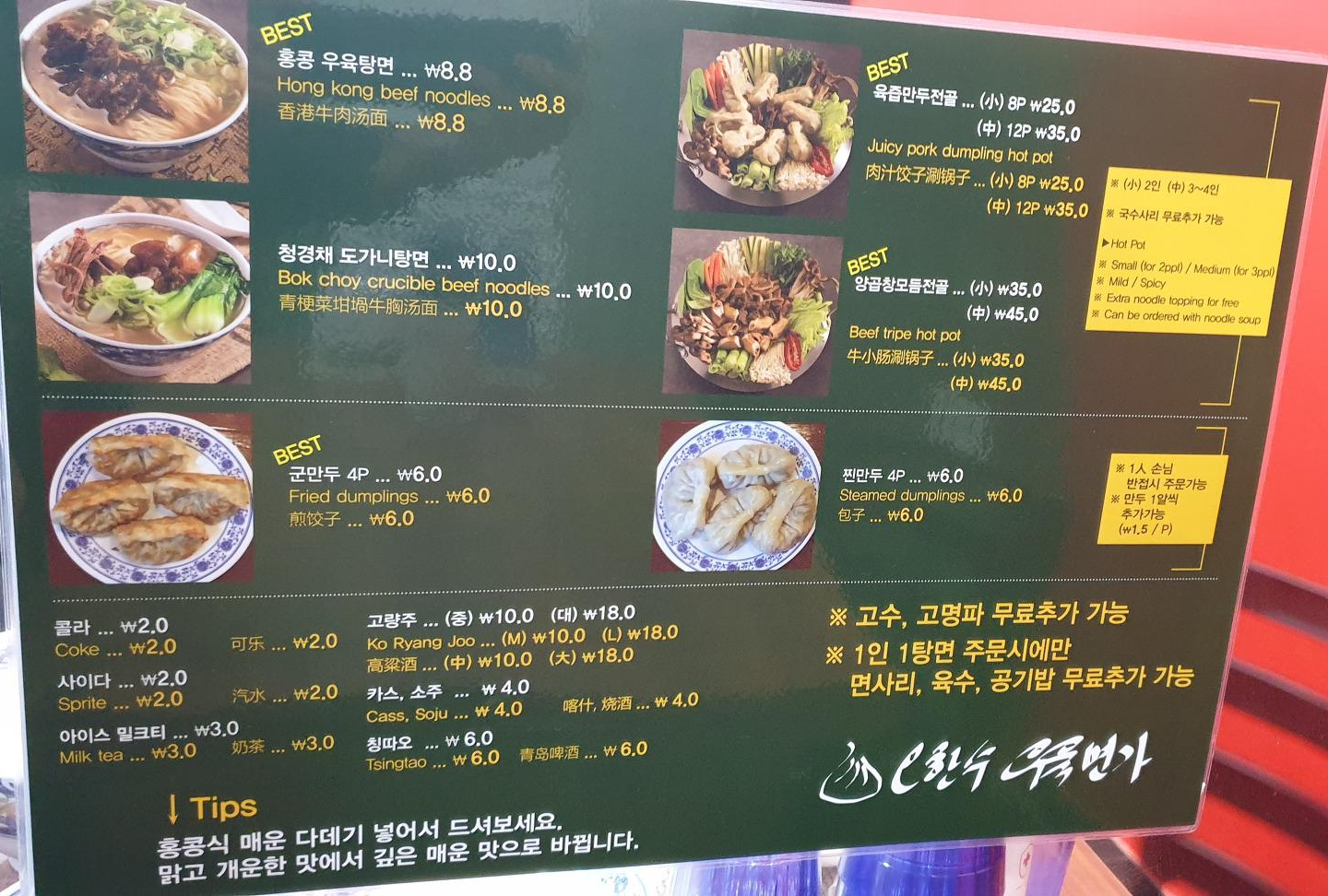 우육탕면을 먹어본 적이 없었는데 국물 맛은 약간 쌀국수랑 비슷했던 것 같습니다. 고기도 엄청 부드러워서 맛있었습니다. 어느 정도 먹다가 다데기를 넣고 먹으니 살짝 매콤한 게 저는 다데기를 넣은 게 더 맛있더군요.