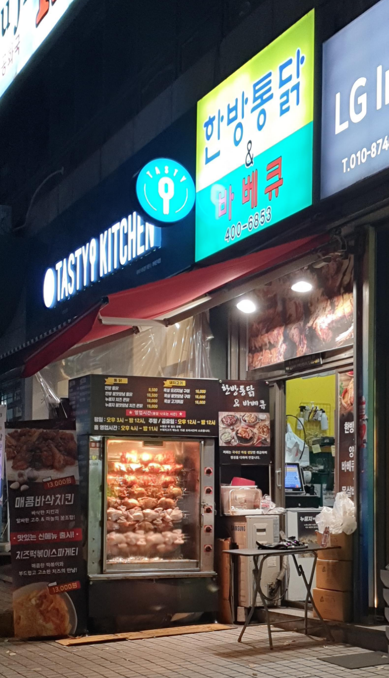 저번에 산책하다가 통닭이 돌고 있는 식당을 발견하고 언제 한번 먹자... 라고 생각하다가 오늘 사 먹었습니다.