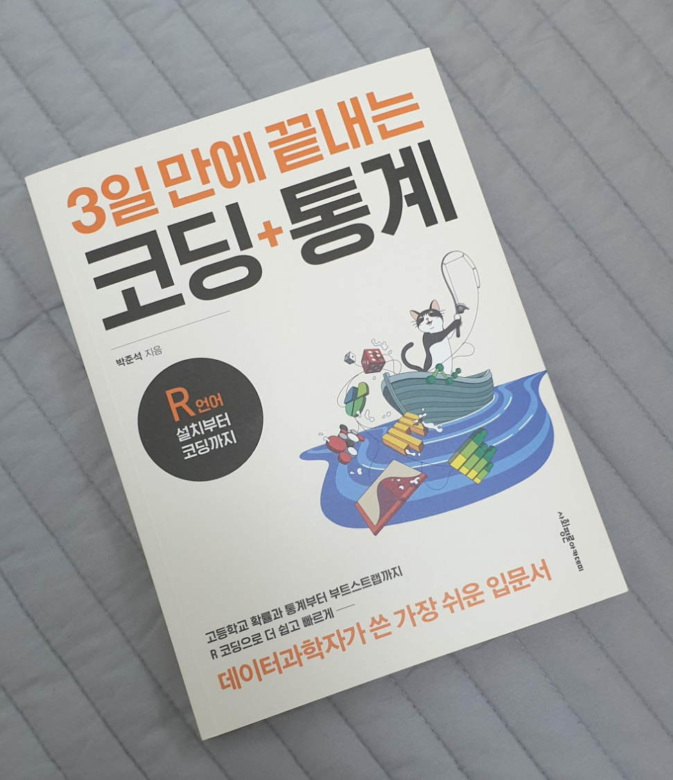 이번에 본 책 '3일 만에 끝내는 코딩+통계' 라는 책은 책의 뒤표지에 표기된 것처럼 코딩을 모르고 통계를 모르고 R을 모르는 입문자들에게 적합한 책이었습니다. 개인적으로 책제목에 코딩이 필요했나 싶기는 했지만 정말 R과 데이터 분석에 대해 하나도 모르는 경우 이 책으로 개념을 잡고 들어가는 것도 좋을 것 같습니다.