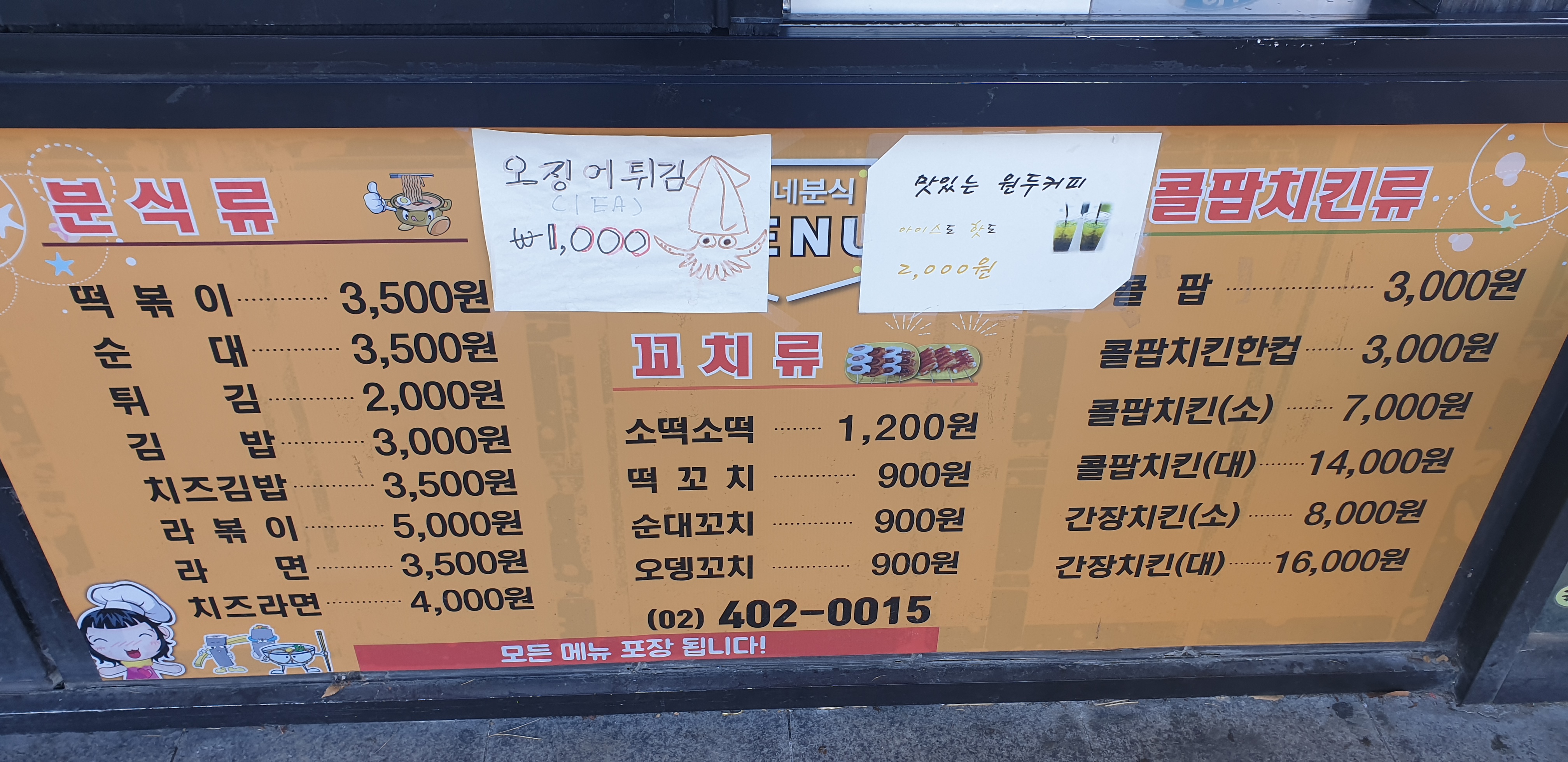 간간히 떡꼬치가 생각날때가 있어서 동네에 있는 분식집을 갔다 왔습니다.