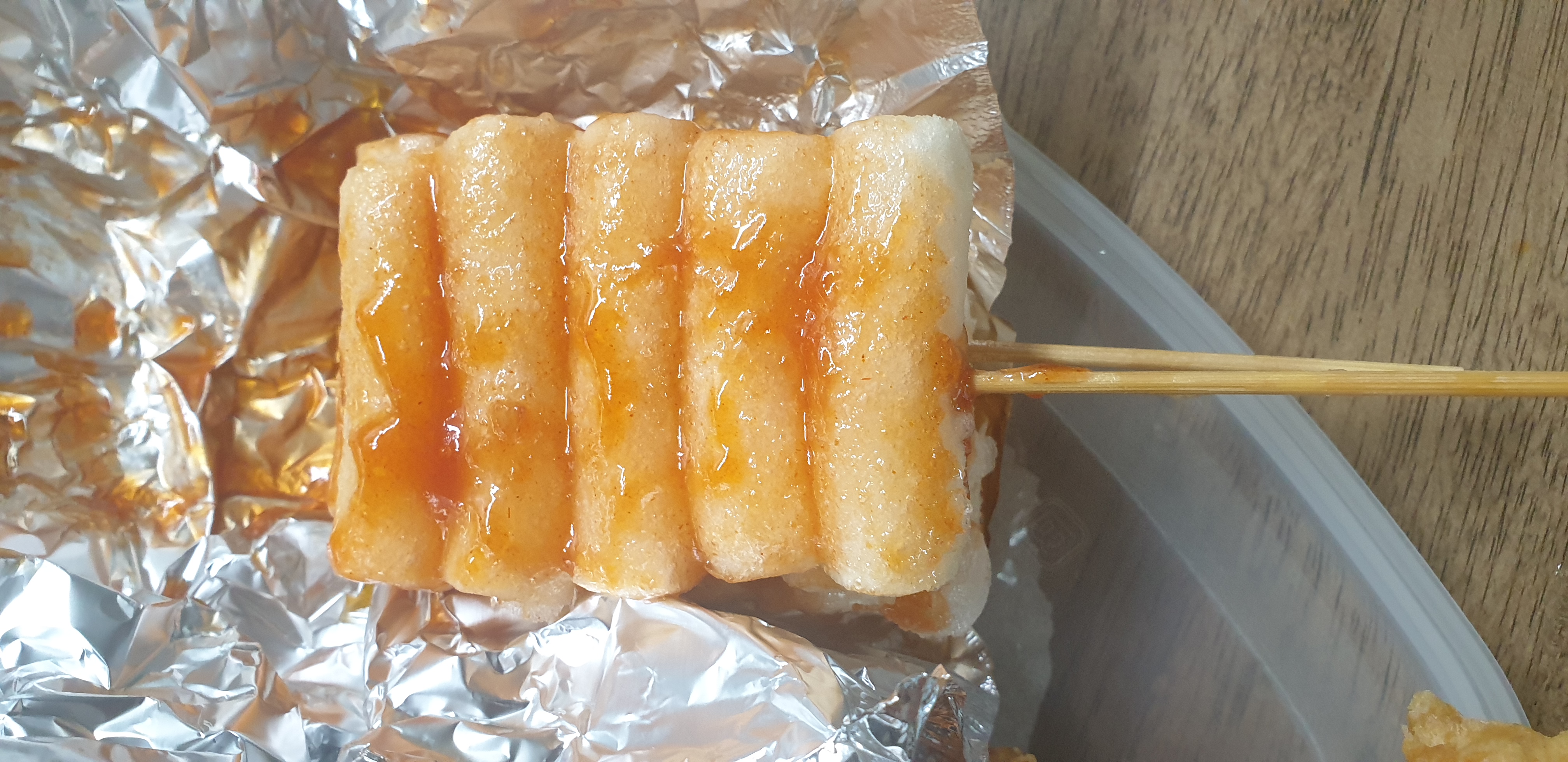 떡꼬치는 제 추억에 있던 떡보다 두껍고 짧네요,