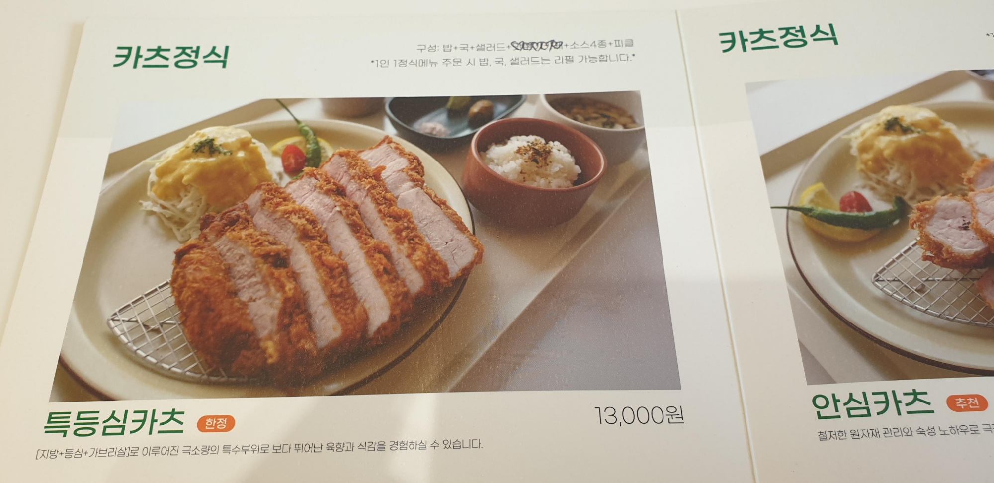 가격은 13000원... 저번에 왔을 때는 이미 매진돼서 안심 카츠를 먹었었죠. 그리고 안심 카츠가 맛있었습니다.