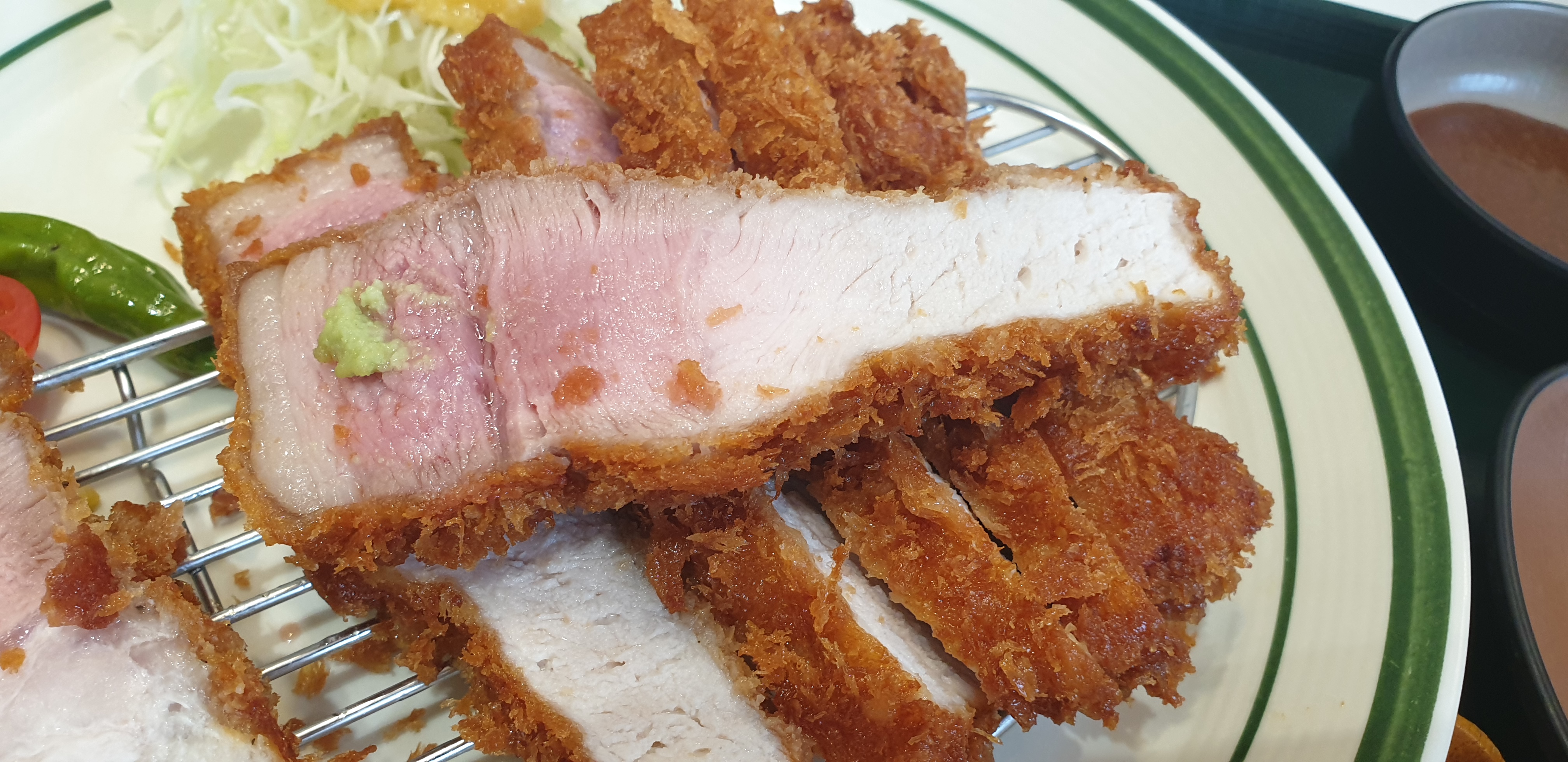 약간 생김새는 진짜 보쌈 수육 같은 느낌이고 정말 느끼했습니다. 김치가 엄청 먹고 싶어지는 느낌... 게다가 크기가 커서 반대편 퍽퍽 살과 같이 먹기도 힘들어서 개인적으론 한정 메뉴지만 다른 일반 메뉴였던 안심 카츠, 등심 카츠 보다 별로 였던 것 같아요.... 다들 한 번씩 먹고 주문을 안 해서 주문이 가능했던 건가...