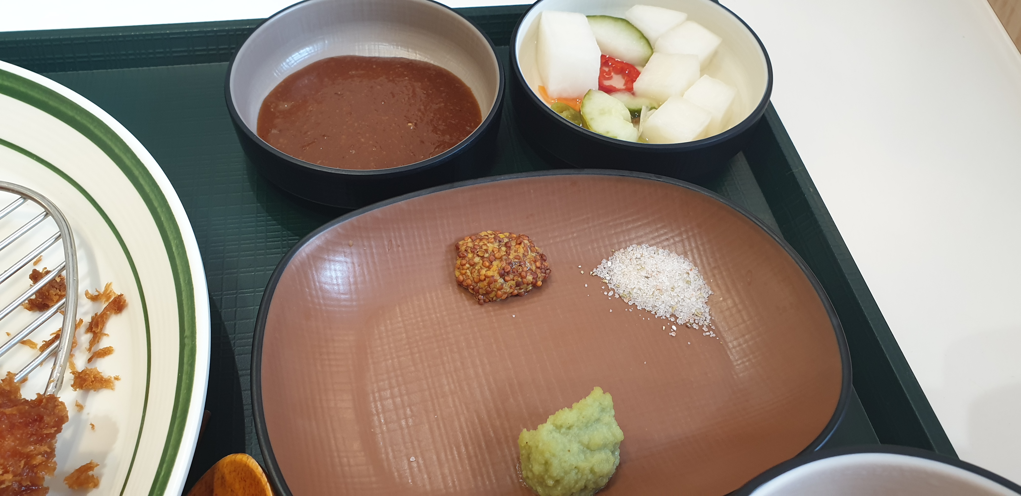 2~3조각까지는 맛있게 먹었지만 4조각 때부터는 조금 느끼해서 국도 리필하고 고추냉이도 엄청 먹어서 와사비 리필도 했었네요. ㅎㅎ 진짜 김치만 있었으면 맛있었을것 같은데 피클과 와사비 만으론 저에겐 너무 느끼했습니다...