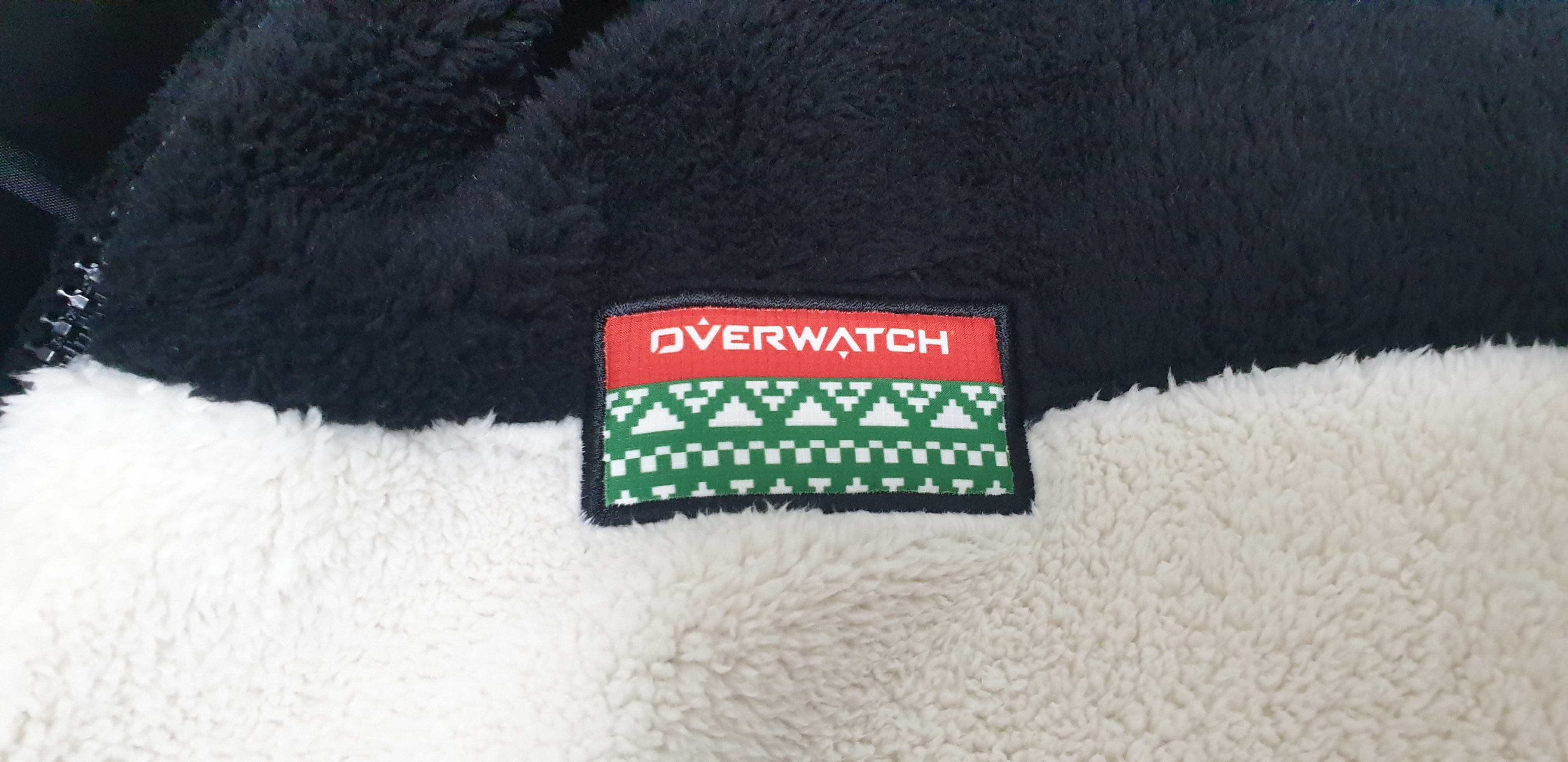 가슴에 오버워치 로고가 있는데 작아서 잘 보이지도 않고요. 크리스마스 기념인지 로고가 크리스마스 갬성이네요.