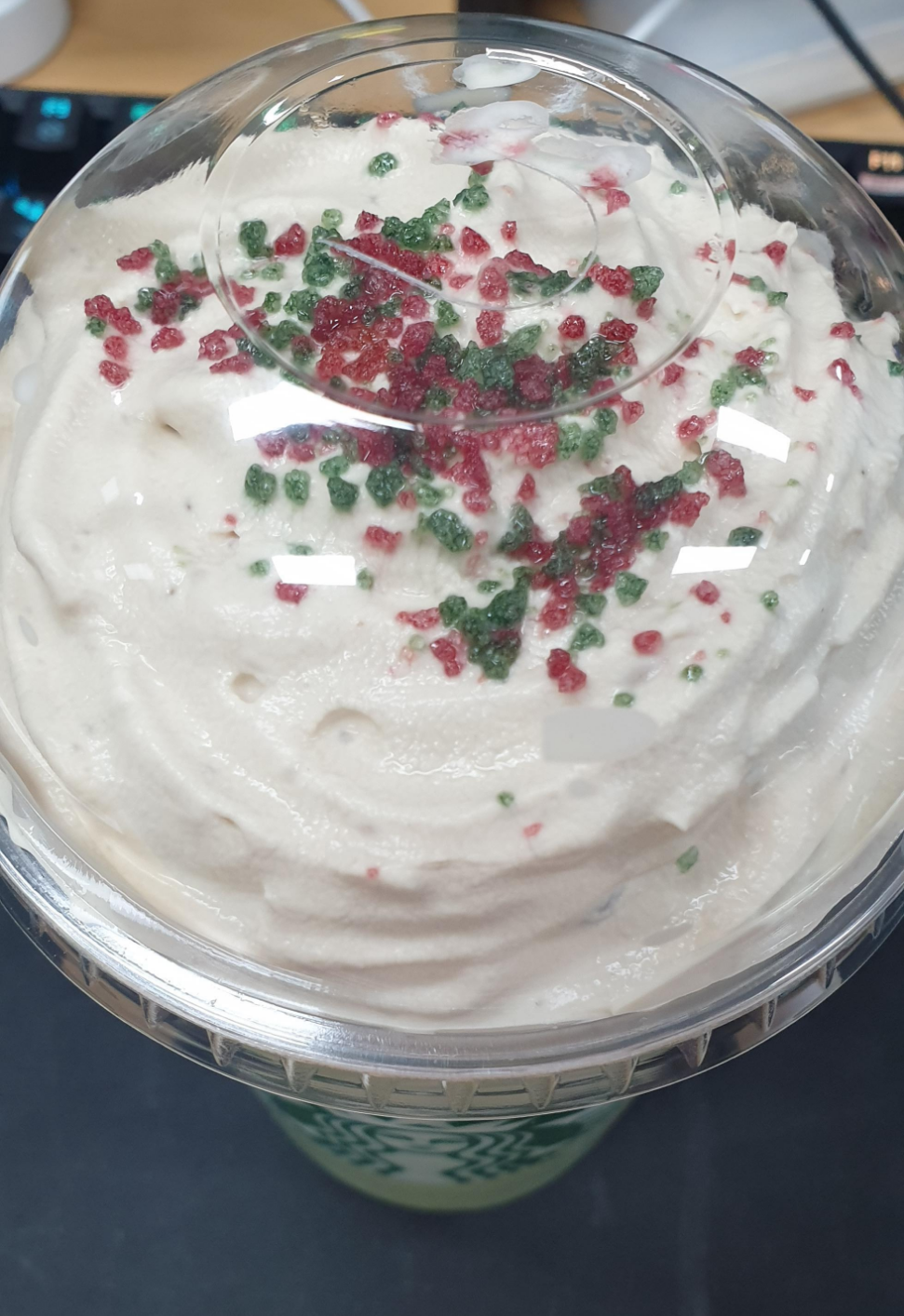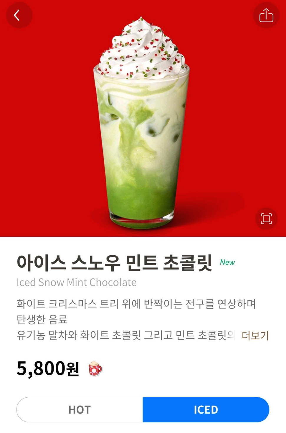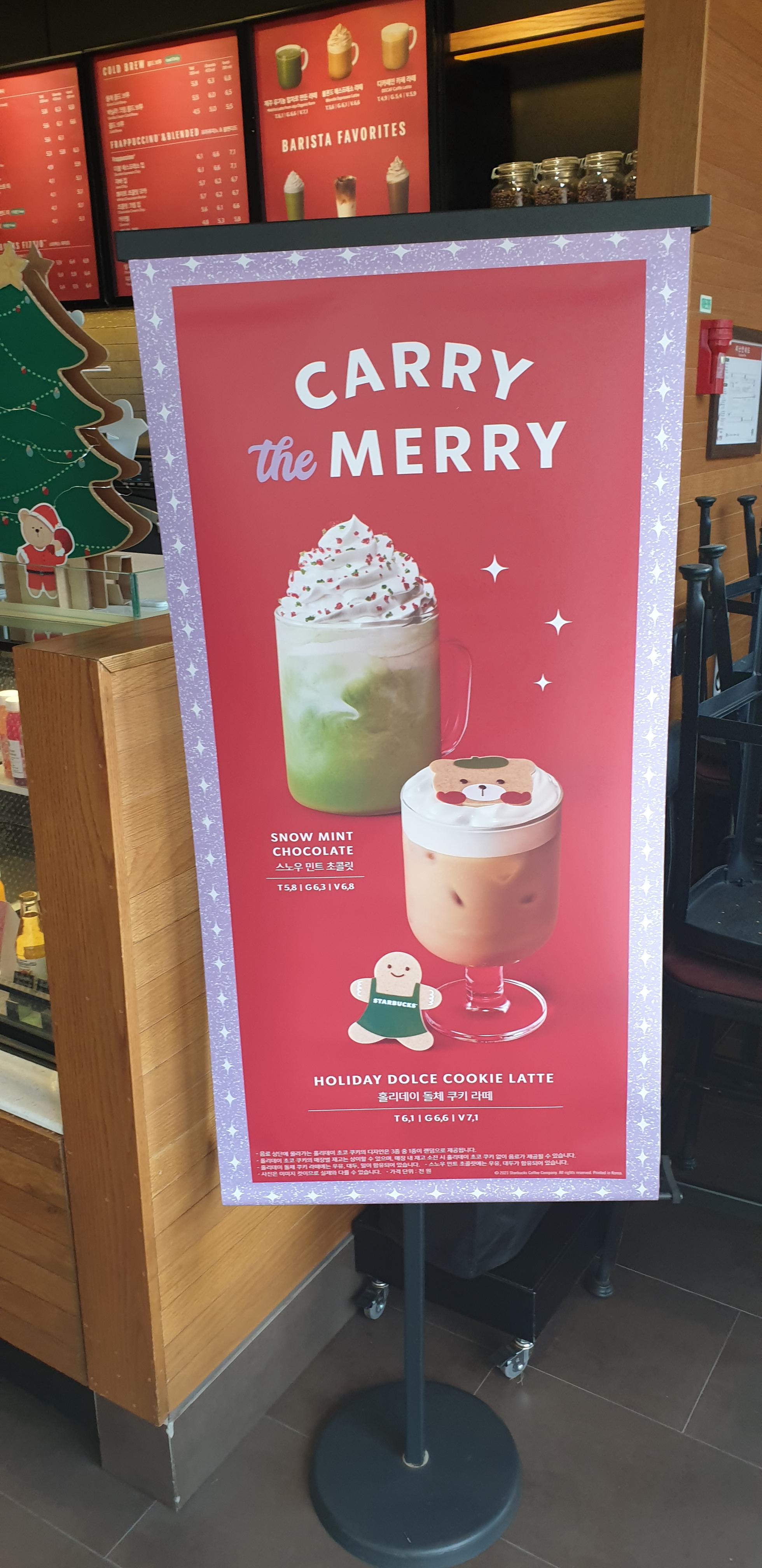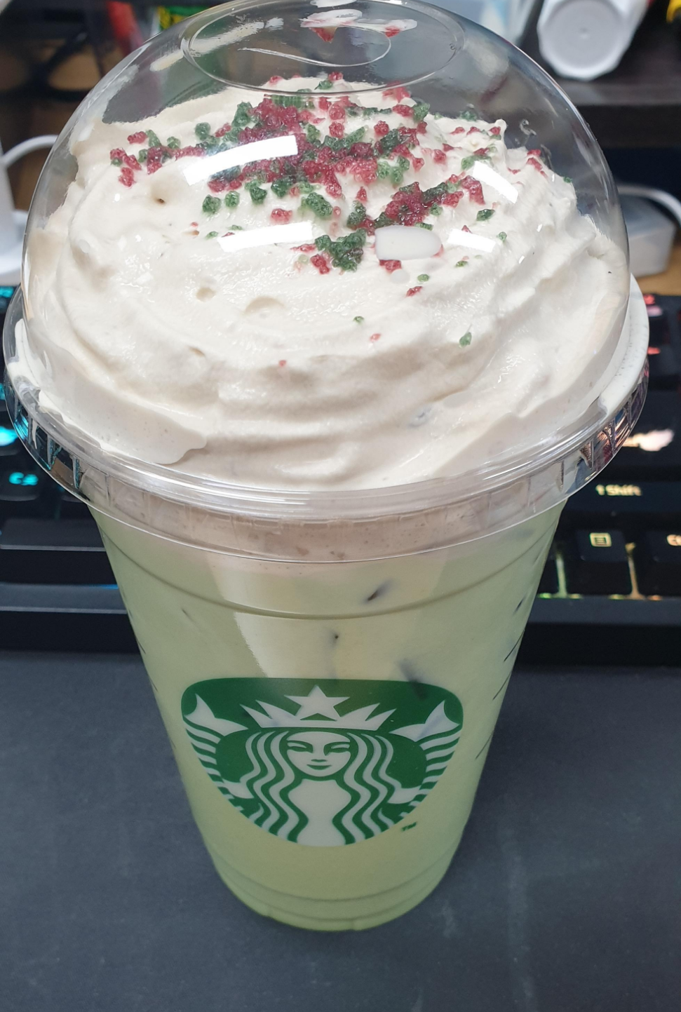 크리스마스 시즌 음료인 아이스 스노우 민트 초콜릿을 먹어봤습니다.