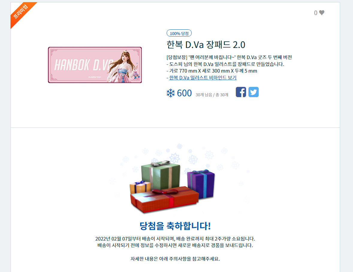 | 오버워치 겨울나라 눈송이 교환소 2022웰컴 세트 당첨 (0) | 2022.01.11 |