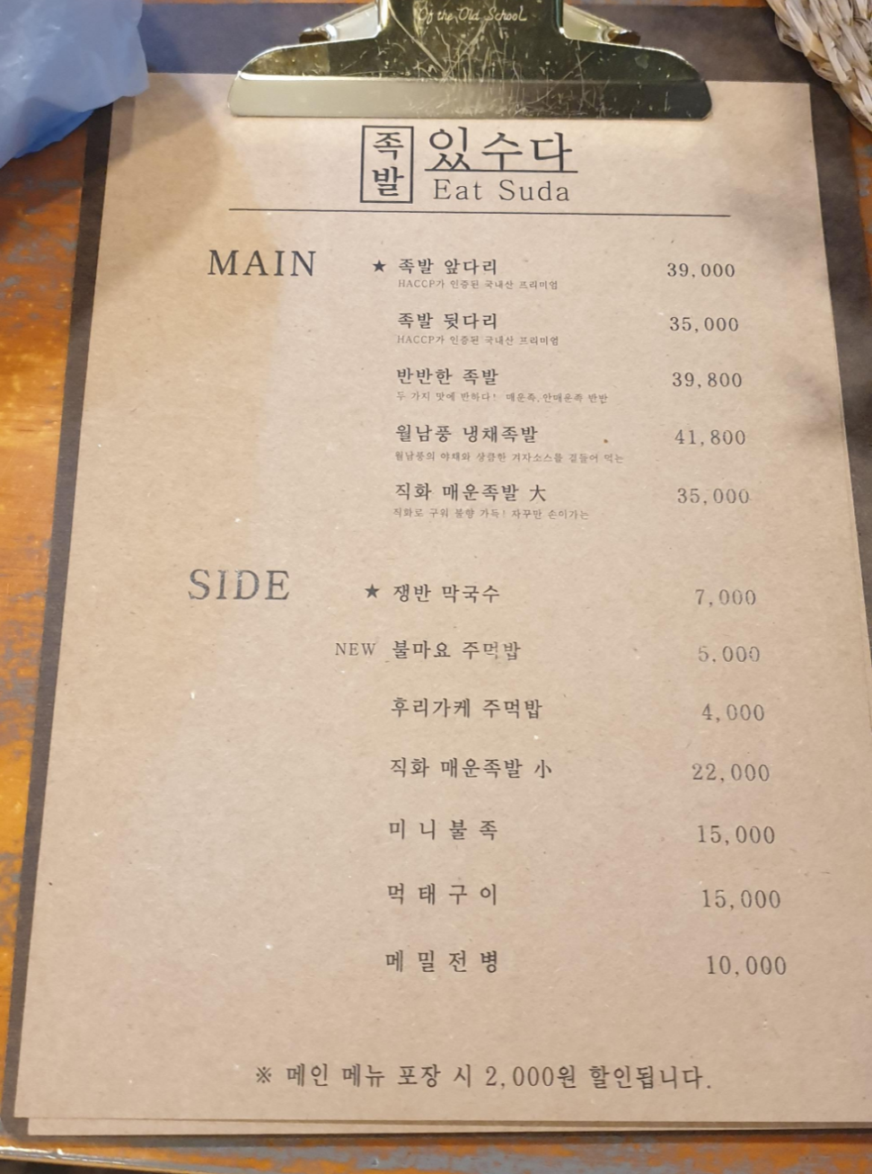 포장 시 2000원 할인을 해주네요.