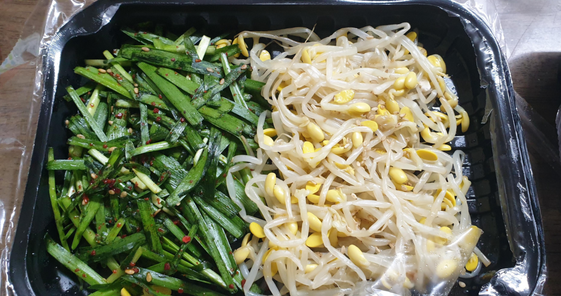 구성은 김가루, 밥, 콩나물, 부추무침, 닭발로 구성되어있군요.