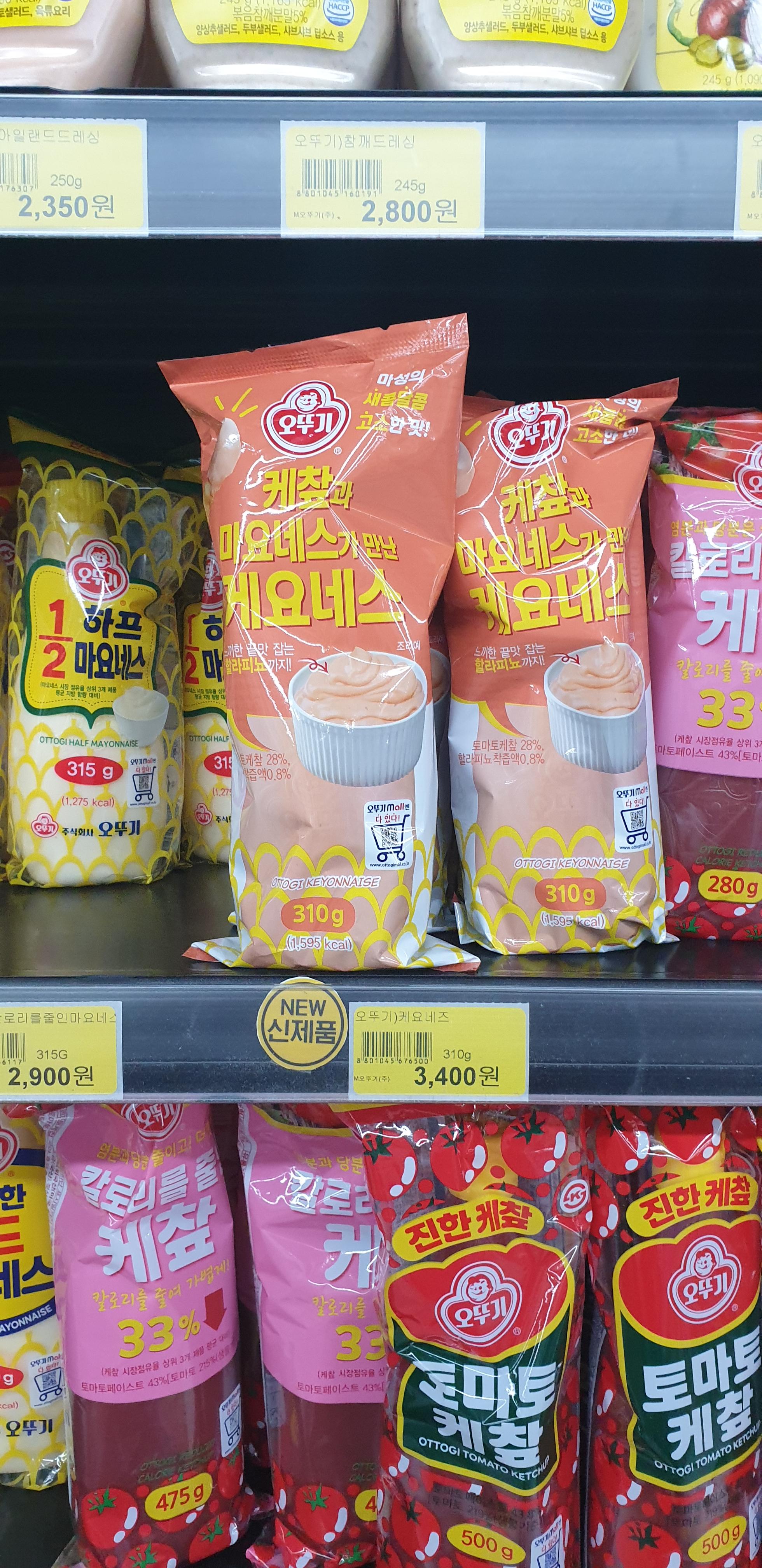 오뚜기에서 케첩과 마요네즈가 섞인 제품이 나왔다는 건 들어봤지만... 케첩도 마요네즈도 있으니 별 관심을 안 가지다가 막상 마트에서 실물을 보니 신기해서 구매해봤습니다. 가격은 3400원 마요네즈보다는 비싸네요.