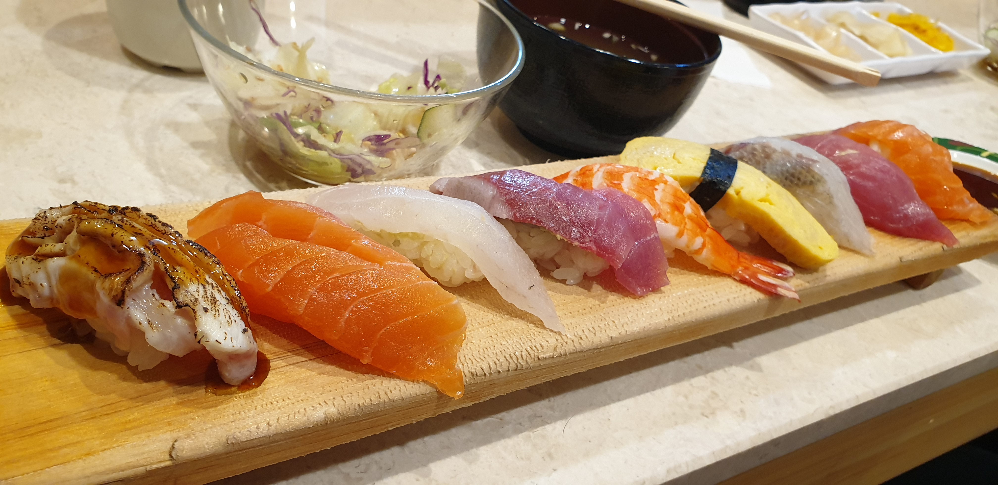 개인적으로 계란초밥은 맛있지만 초밥 사이에 끼여있으면 뭔가 손해 보는 기분인 것 같습니다.