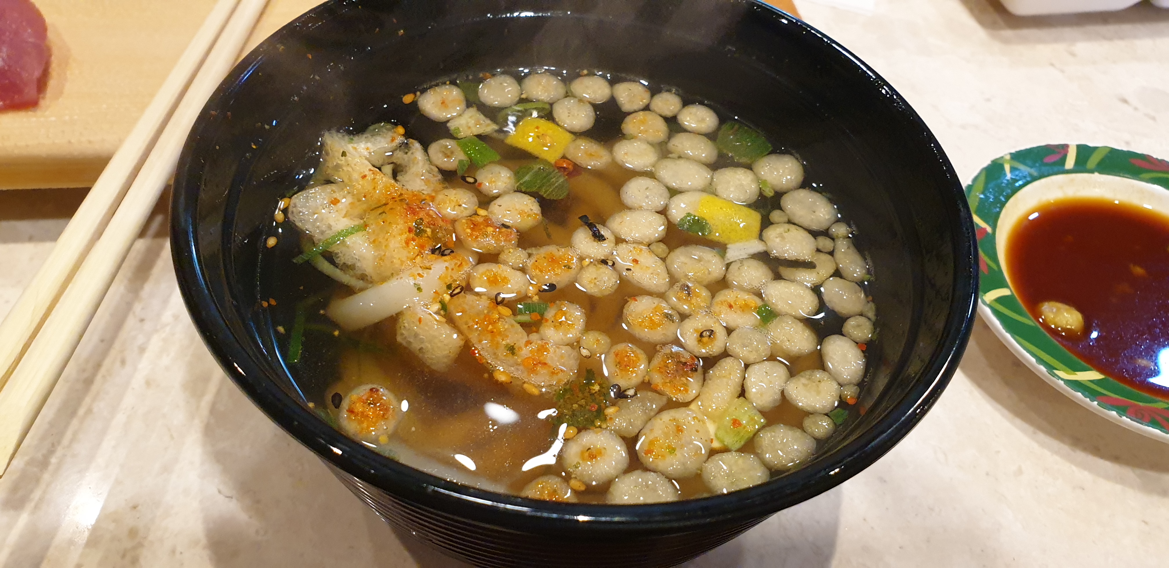 초밥을 먹다 보니 우동과 김 마끼가 나왔습니다.