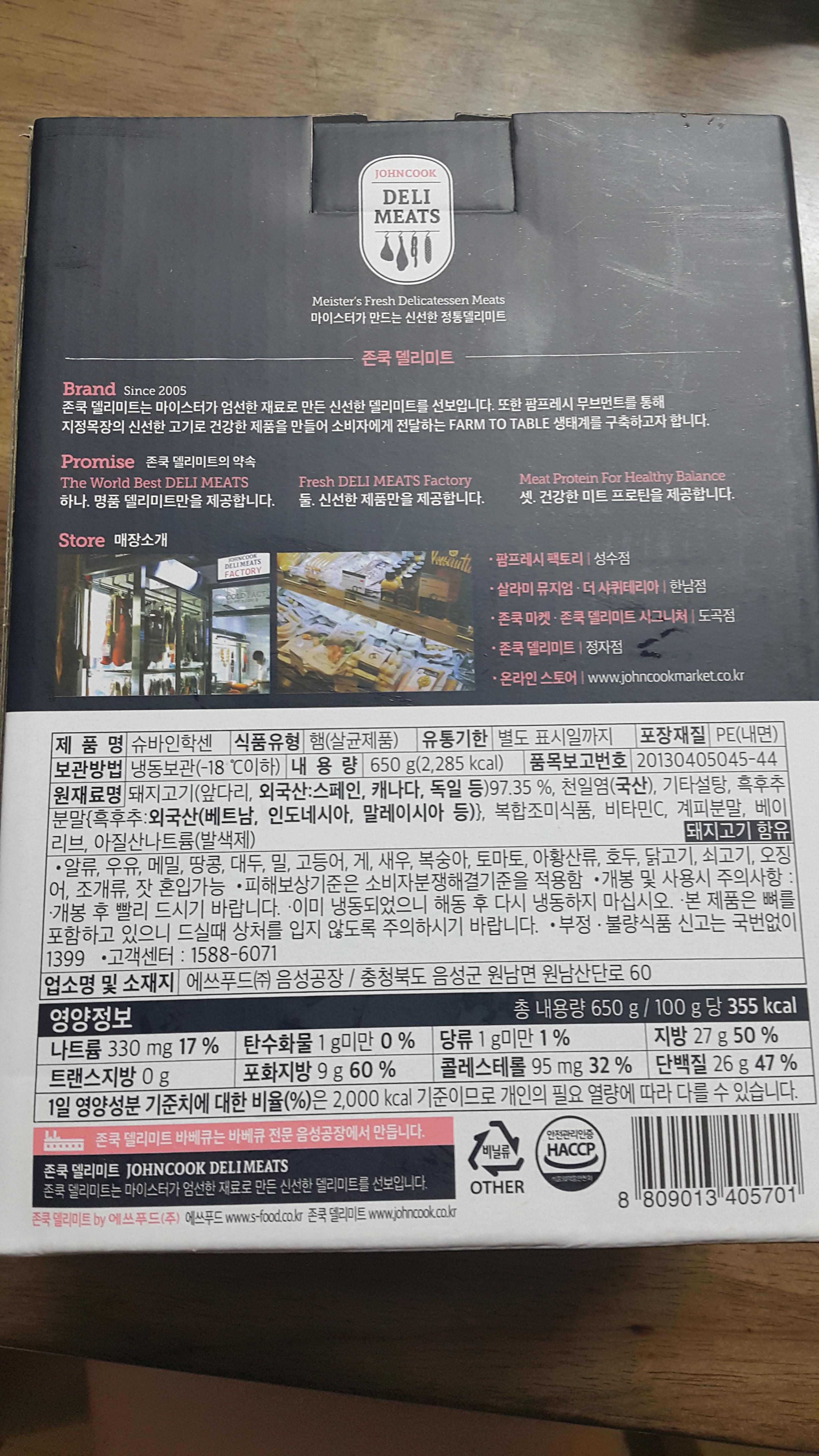 마켓 컬리에서 18000원에 팔고 있는 존쿡 델리미트 슈바인 학센 650g 구매할 땐 할인을 했던 건가 14000원 정도에 샀던 것 같아요.