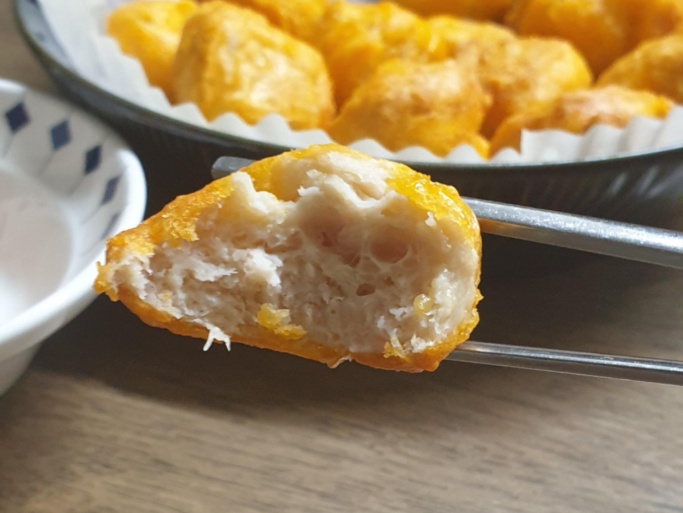 색상은 일반 치킨너겟 느낌이 나네요. 동글동글한 치킨 너겟