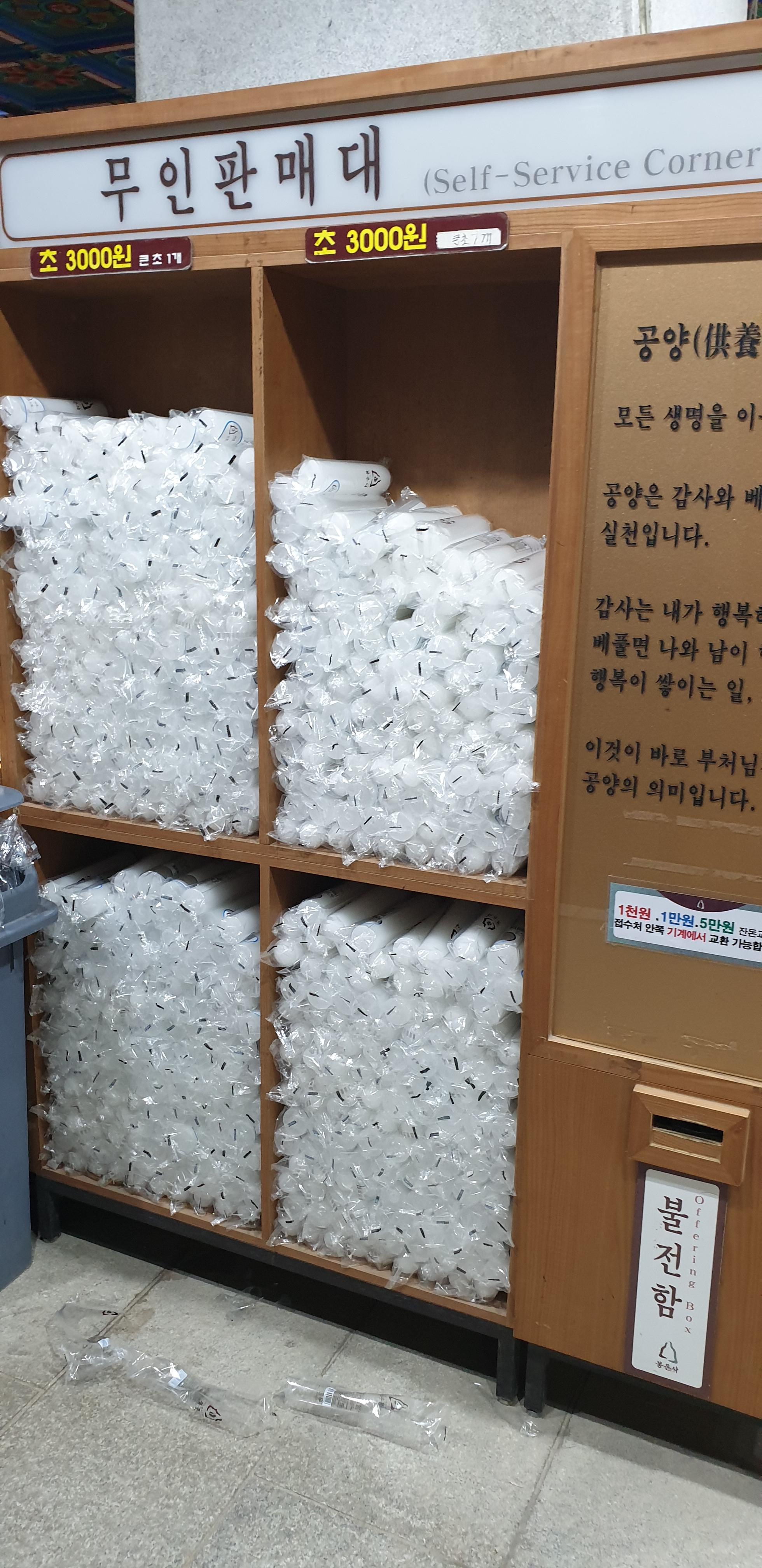 들어가면서 보이는 초 무인 판매대 저는 3000원짜리 초와 5000원짜리 초를 구매해서 소원을 적어봤습니다. 초들 이 진짜 신기하게 생겼더군요. 나혼자산다에서 기안84가 올렸던 십이지신 쥐모양 양초도 있더군요.