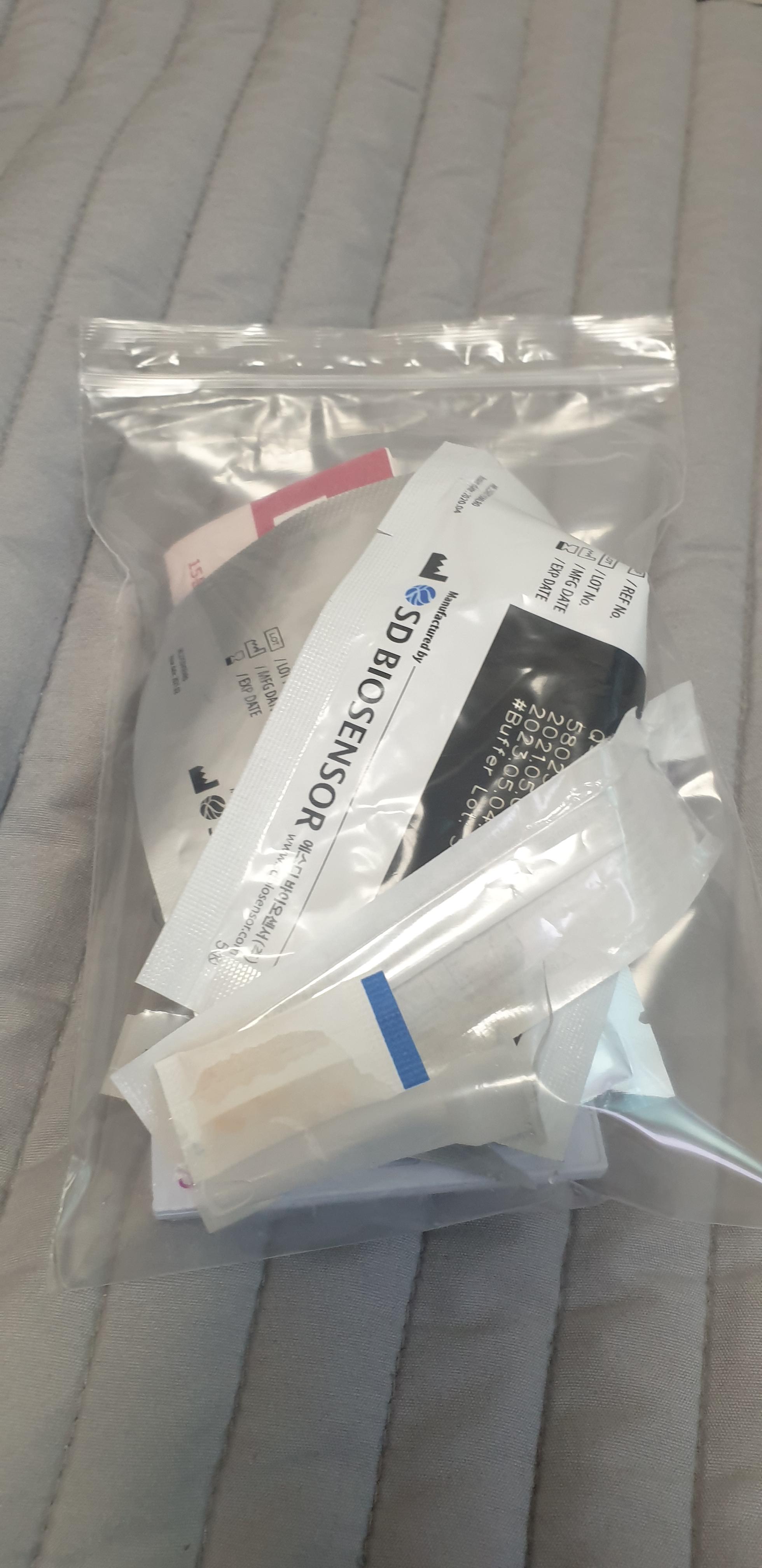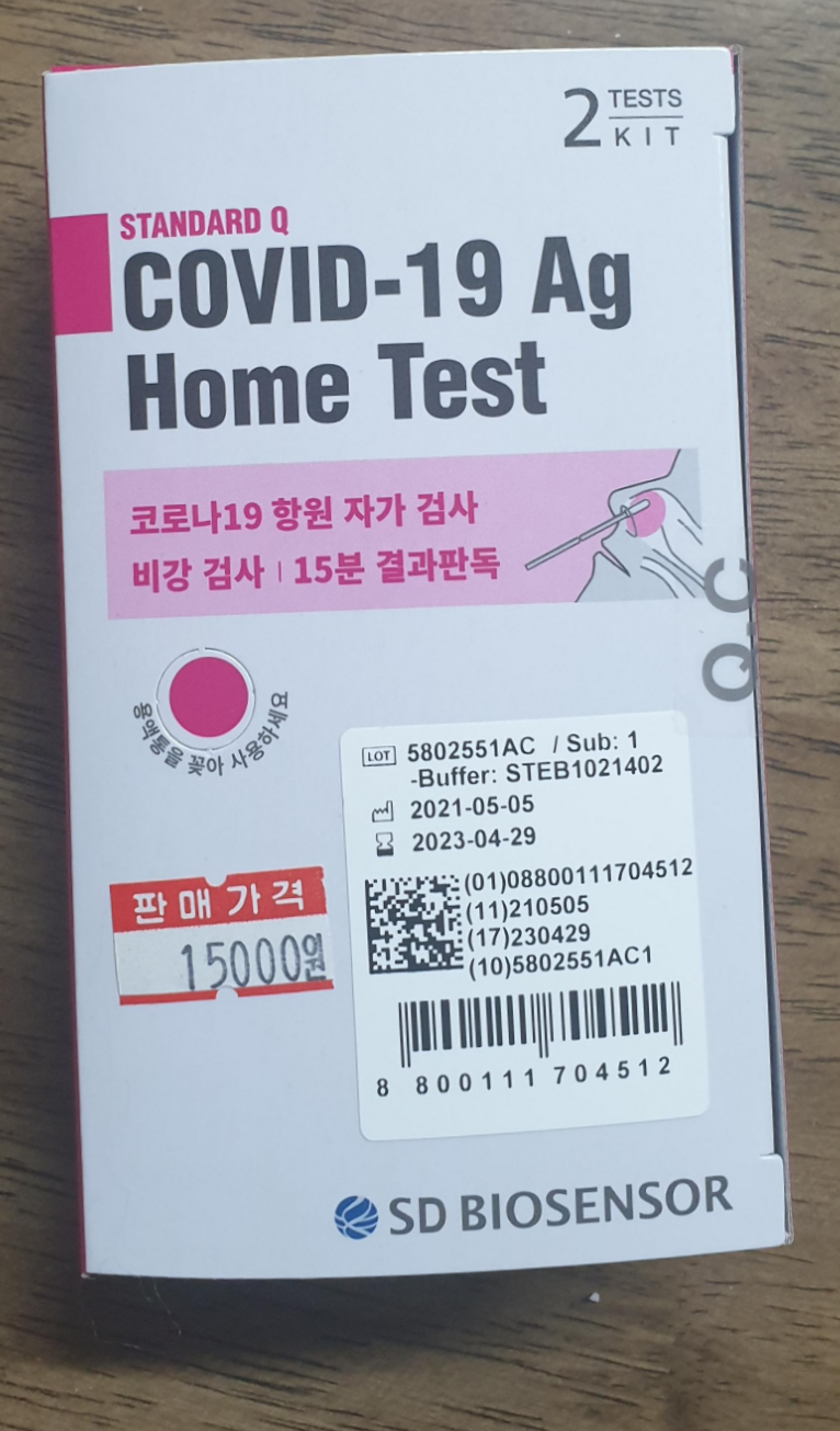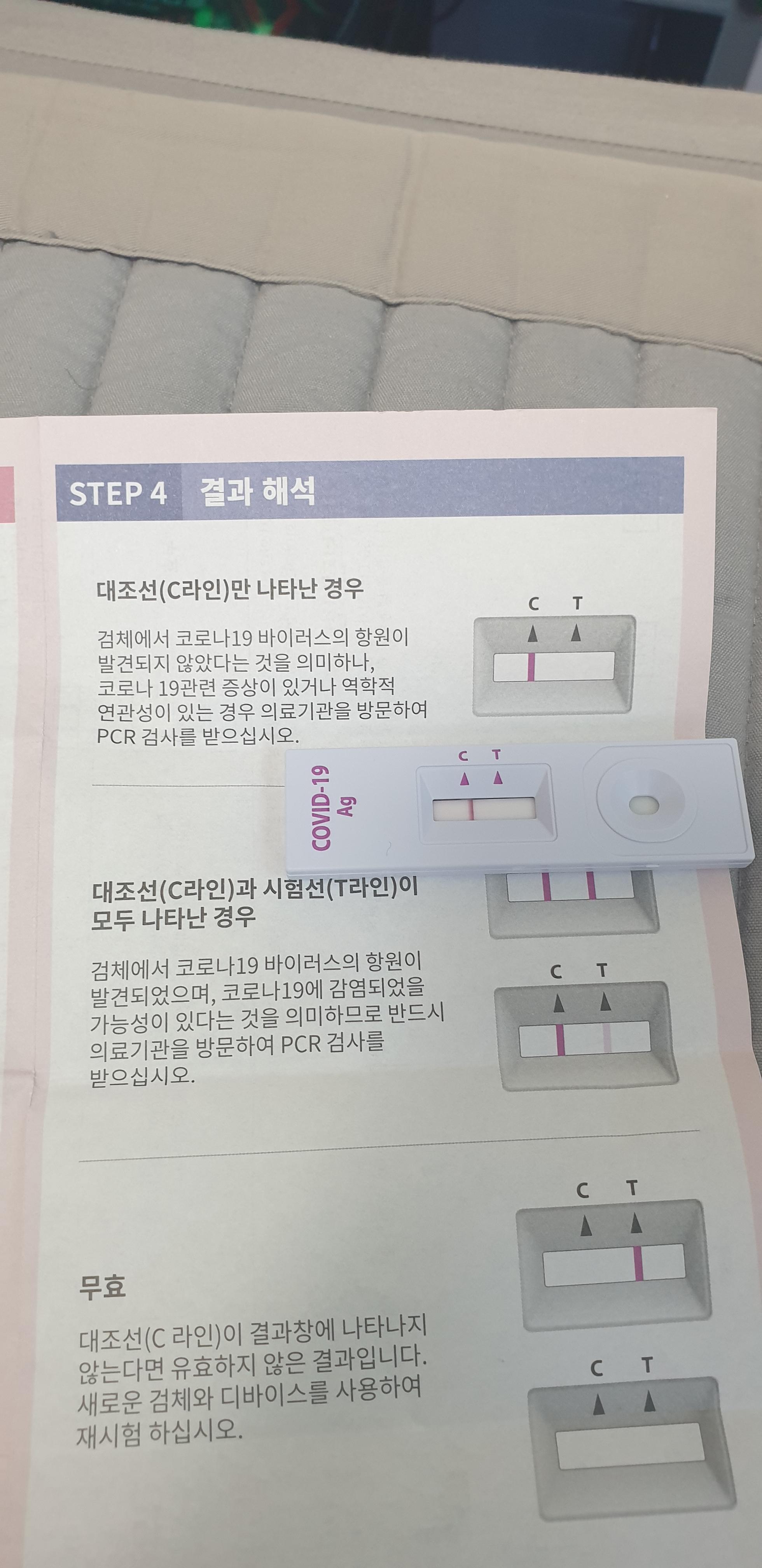 동네 약국에서 산 코로나 자가진단 키트... 주말에 자고 있는데 회사에서 확진자가 나왔다고, 하는 소리에 자가 검사를 해봤습니다.