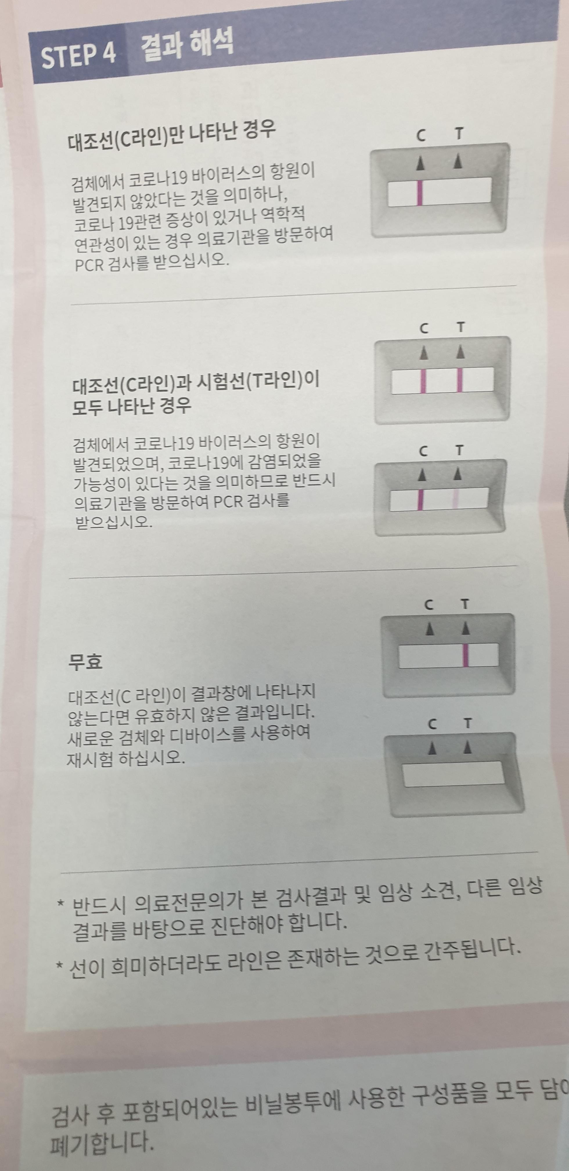 혼자서 코 찌르는것도 뭔가 제대로 안 나올까 봐 깊게 쑤시니... 예전에 코로나 검사받던 기억이 (2021.07.06 - [일상/그냥저냥] - 경찰병원 선별진료소 코로나 검사 후기) 나네요. 혼자해도 깊게 넣으니 눈물이 나옵니다...