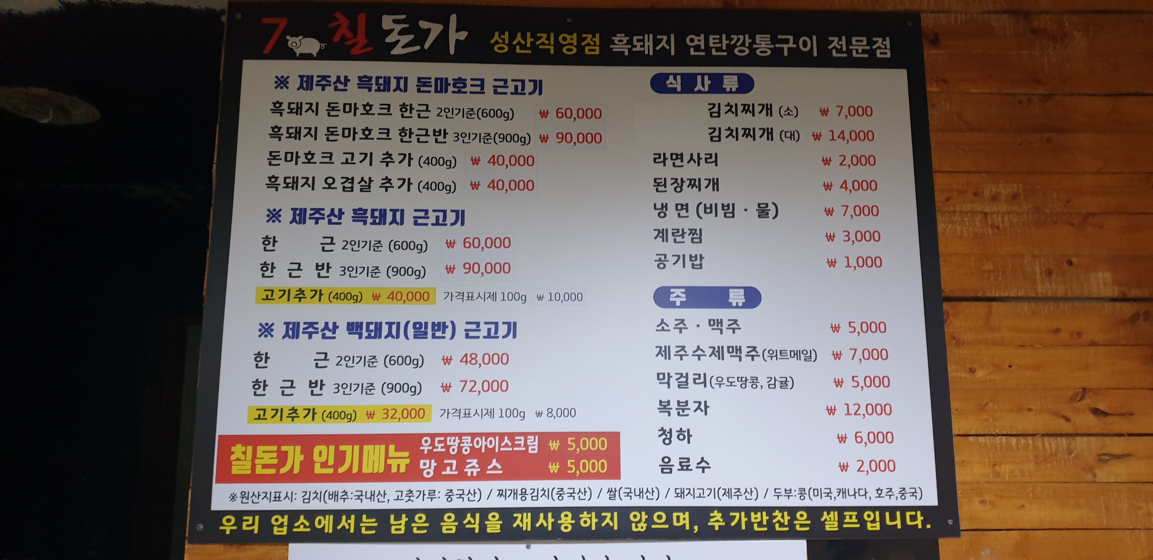 가격은... 제주도 물가 굉장하군요. 역시 제주도 갈 돈이면 동남 아가서도 놀 수 있다는 말이 체감되는 물가...
