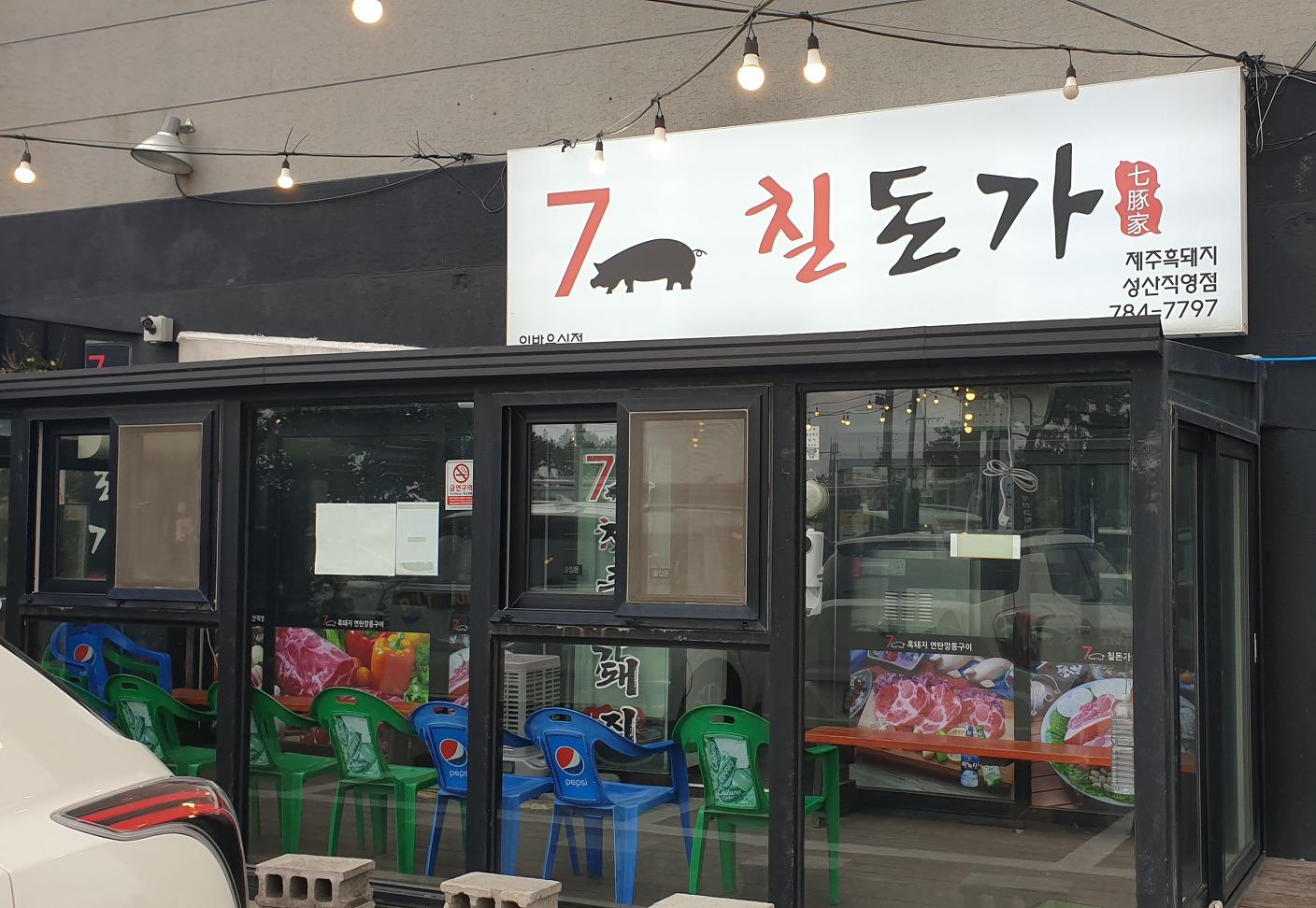 숙소가 성산 근처 이기도 하고 저녁은 제주도도 왔으니 흑돼지를 먹자라는 생각에 인터넷에 성산일출봉 흑돼지로 검색해 봤더니 나온 집중 근방인 곳으로 네비를 찍고 찾아갔습니다. 그 식당이 바로 칠돈가