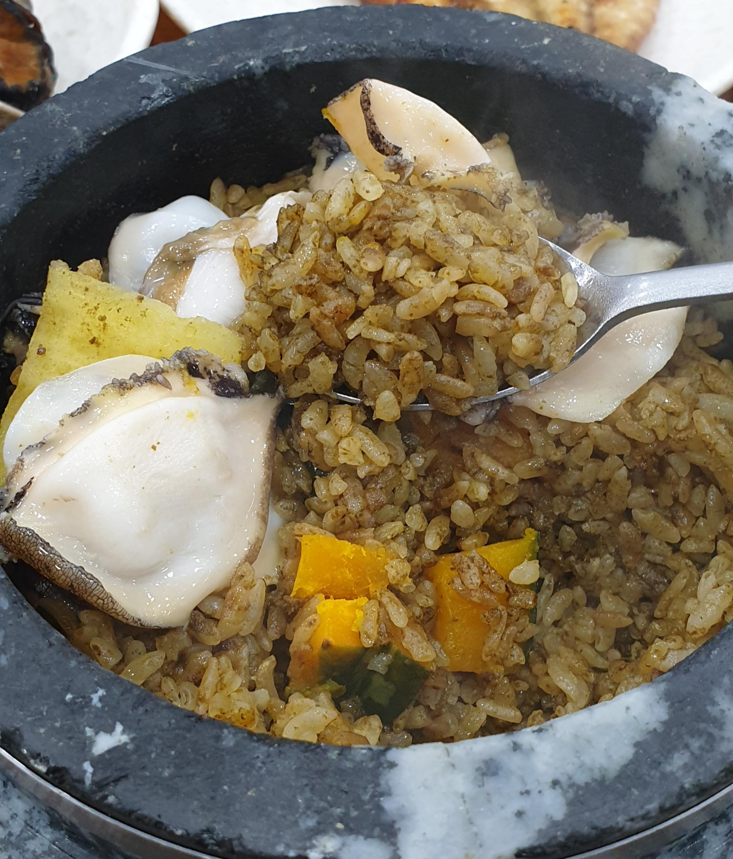 전복내장 맛이 나서 밥이 맛있더군요. 안에 단호박, 대추, 은행도 들어 있고 말이죠.