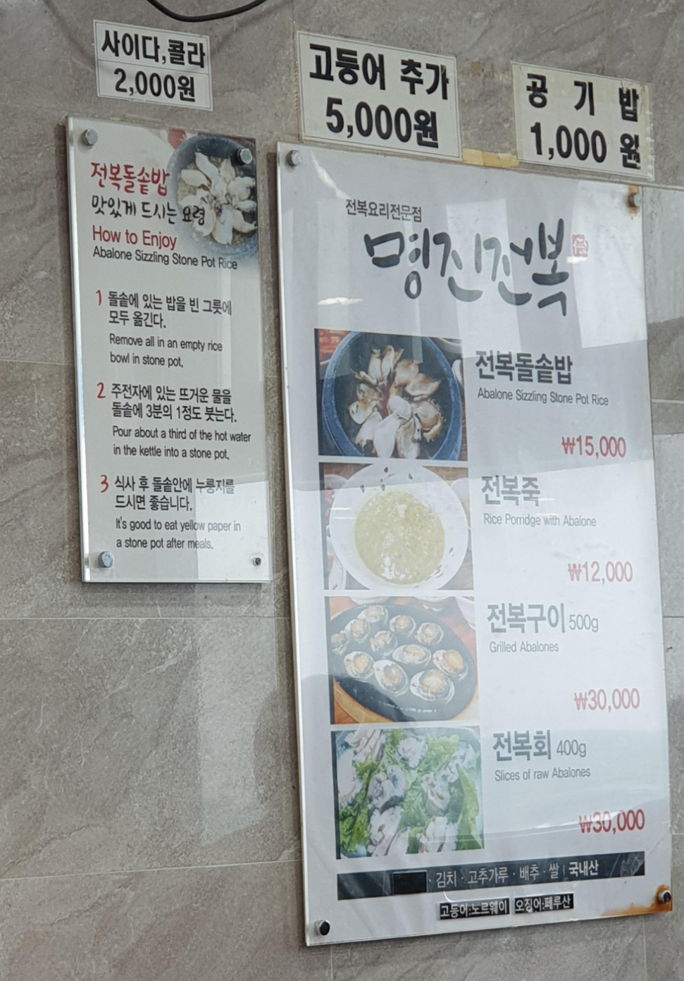 저희는 전복돌솥밥을 인당 1개씩 시키고 전복구이를 시켰습니다.
