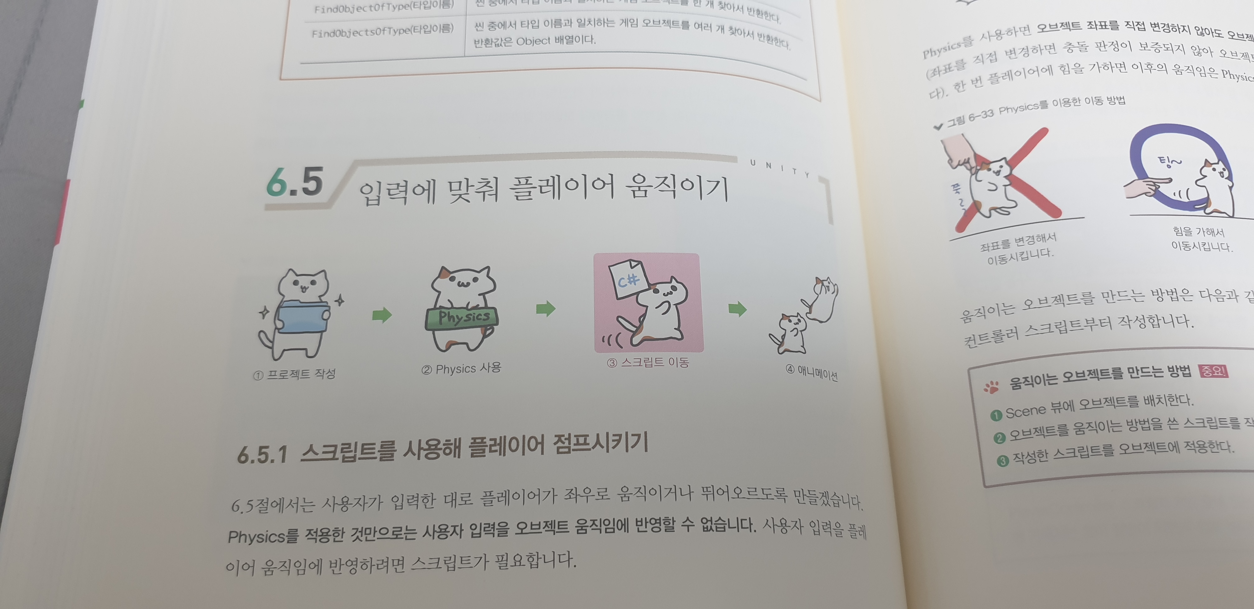 3장부터 본격적으로 오브젝트를 배치하거나 움직이는 방법부터 UI 배치 방법, 프리 팹과 충돌 등의 대한 실습을 하면서 간단한 게임을 만들 수 있네요.