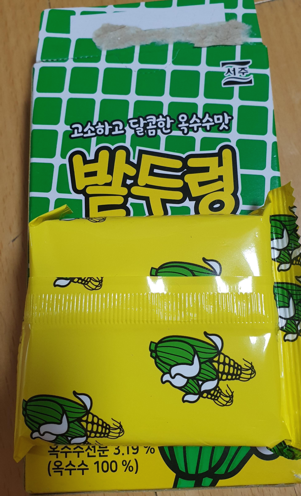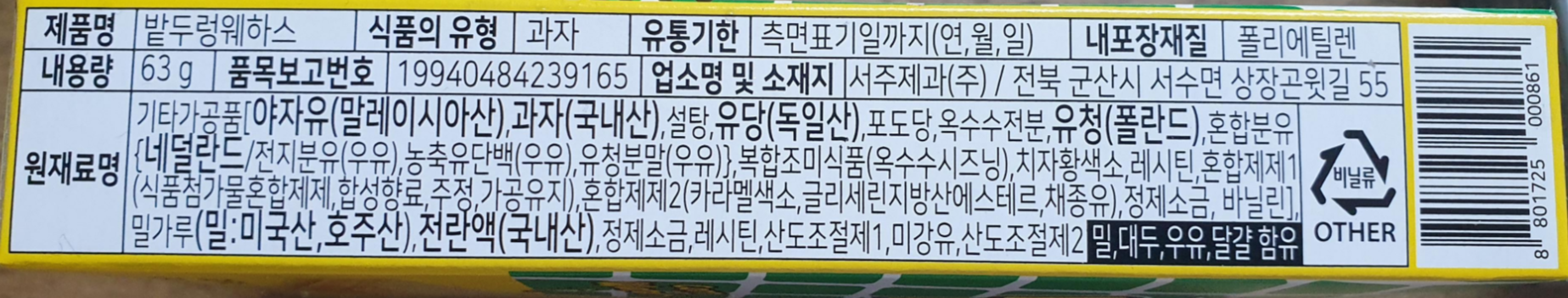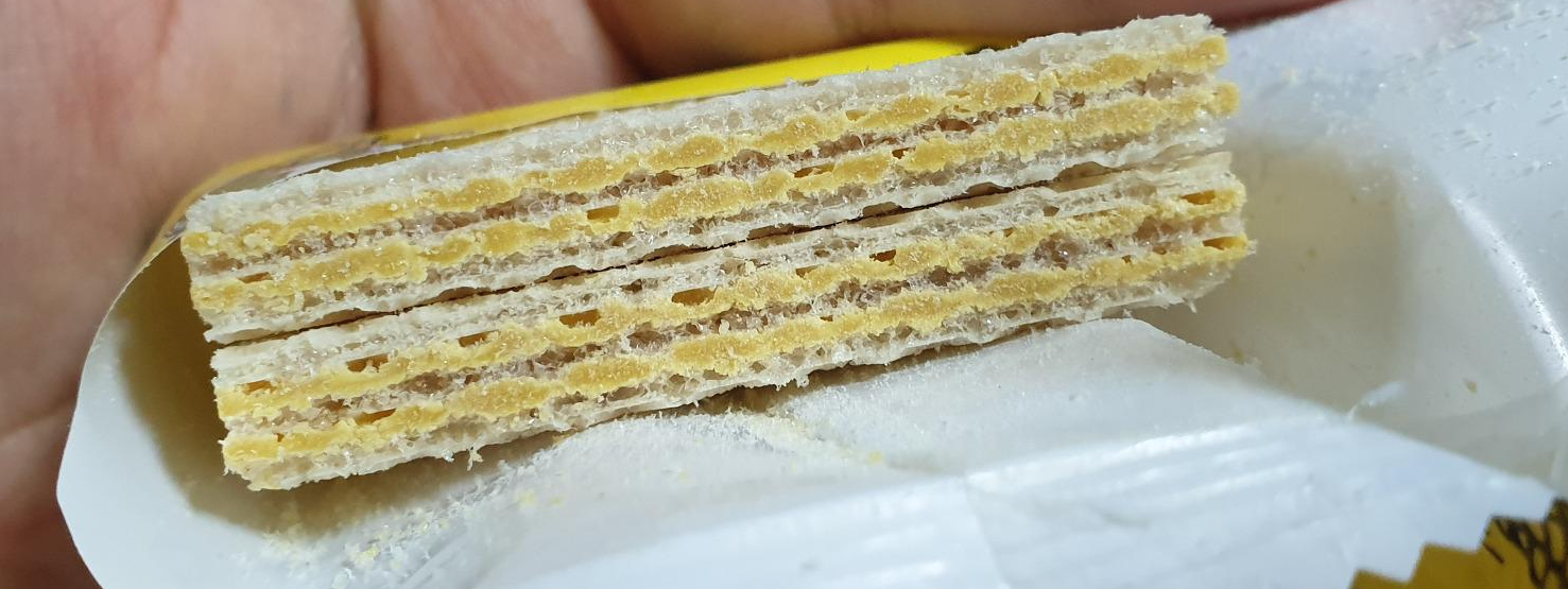 웨하스 단면이 밭두렁이라 그런지 옥수수 색상이네요.
