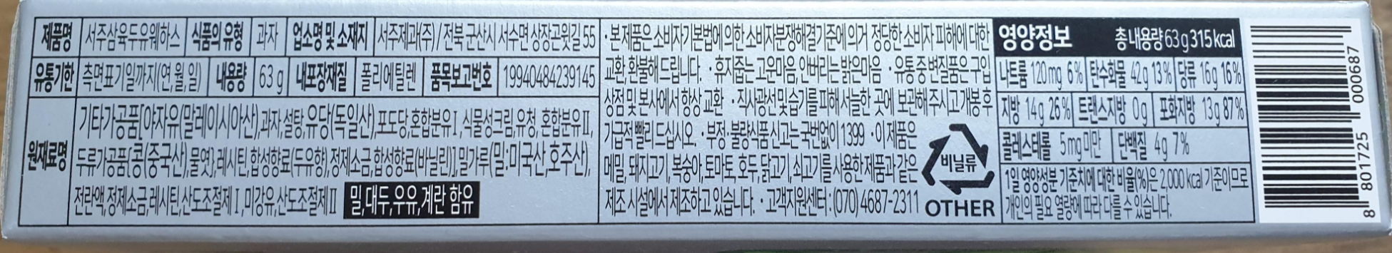 삼육두유 웨하스도 칼로리가 315입니다.