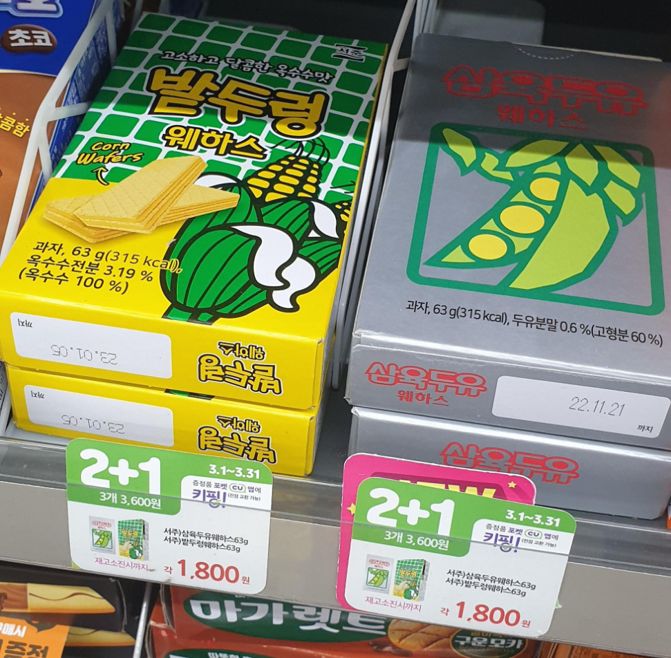 2+1이라 삼육두유 웨하스 2개, 밭두렁 웨하스 1개로 구매했네요.