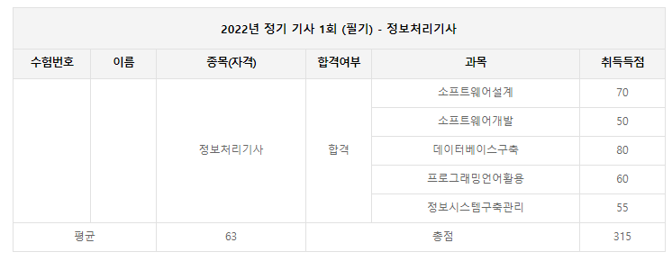 오랜만에 다니던 중학교보니깐 추억이 새록새록... 하여튼 시험을 보고 가채점을 해보니 61점... 뭔가 쫄깃쫄깃한 점수라 이거 떨어지는거 아닌가 생각했는데 오늘 시험 결과를 보니 63점 턱걸이로 합격 했네요.