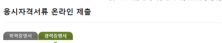 전 경력 증명서를 제출해야 하기 때문에 탭 메뉴를 경력증명 서로 선택하고 내용을 확인해보니...