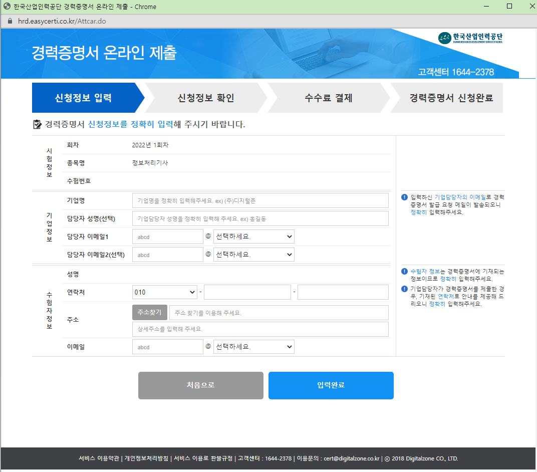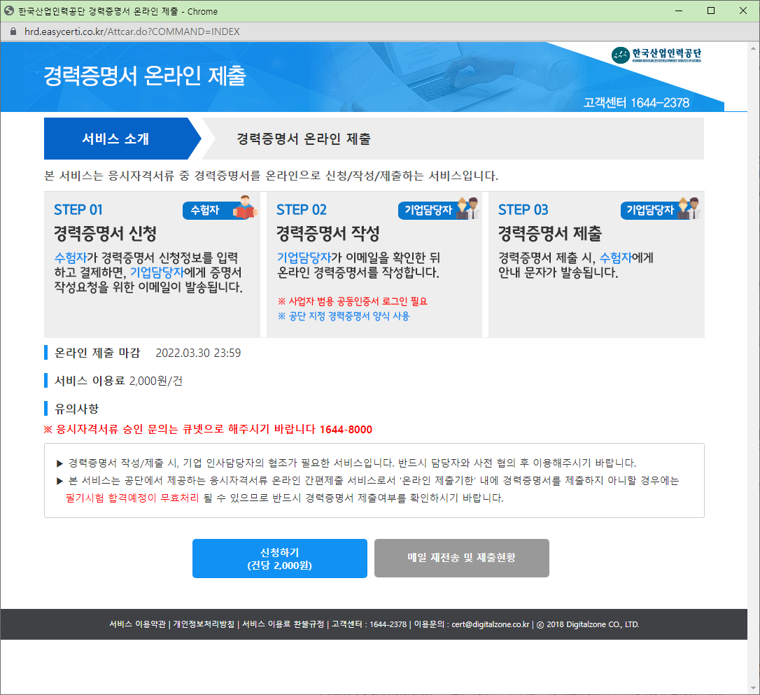 신청 결제 까지만 하고 실제로 제 경력서를 제출해주는 건 회사 인사과에서 해주는 건가 봅니다.