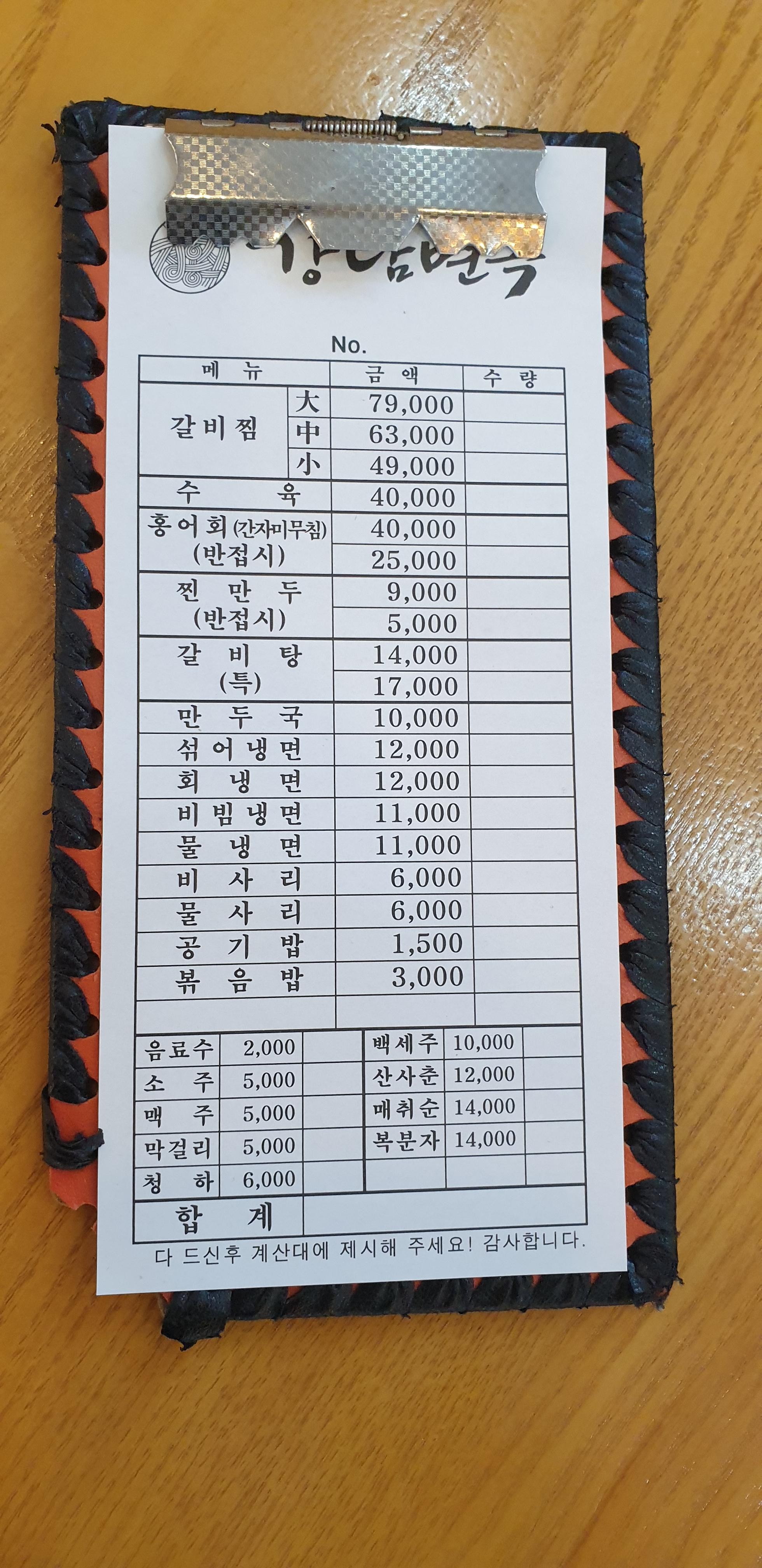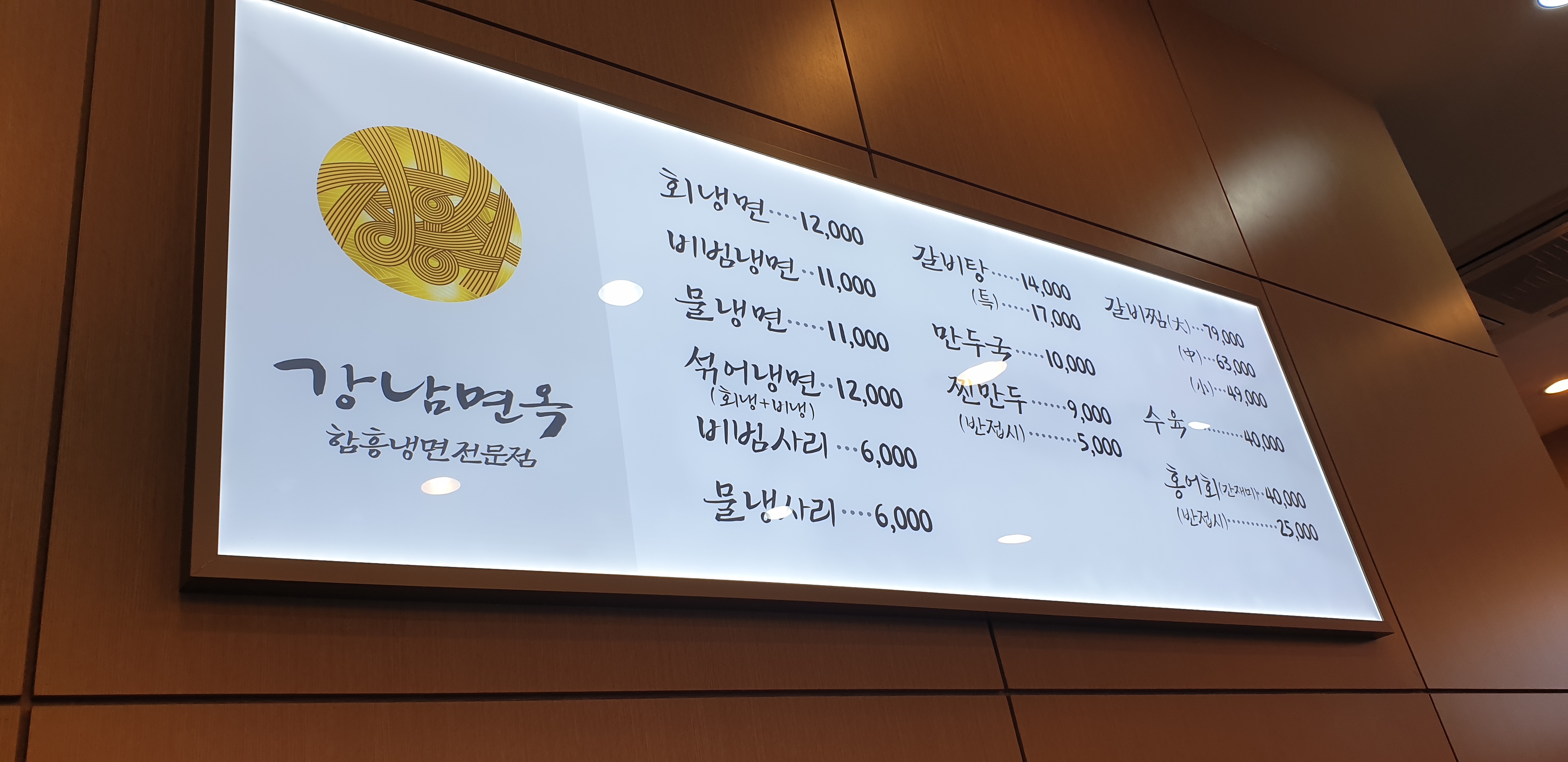 메뉴판을 보니 확실히 함흥 본가 면옥보다는 비싼 가격이네요.