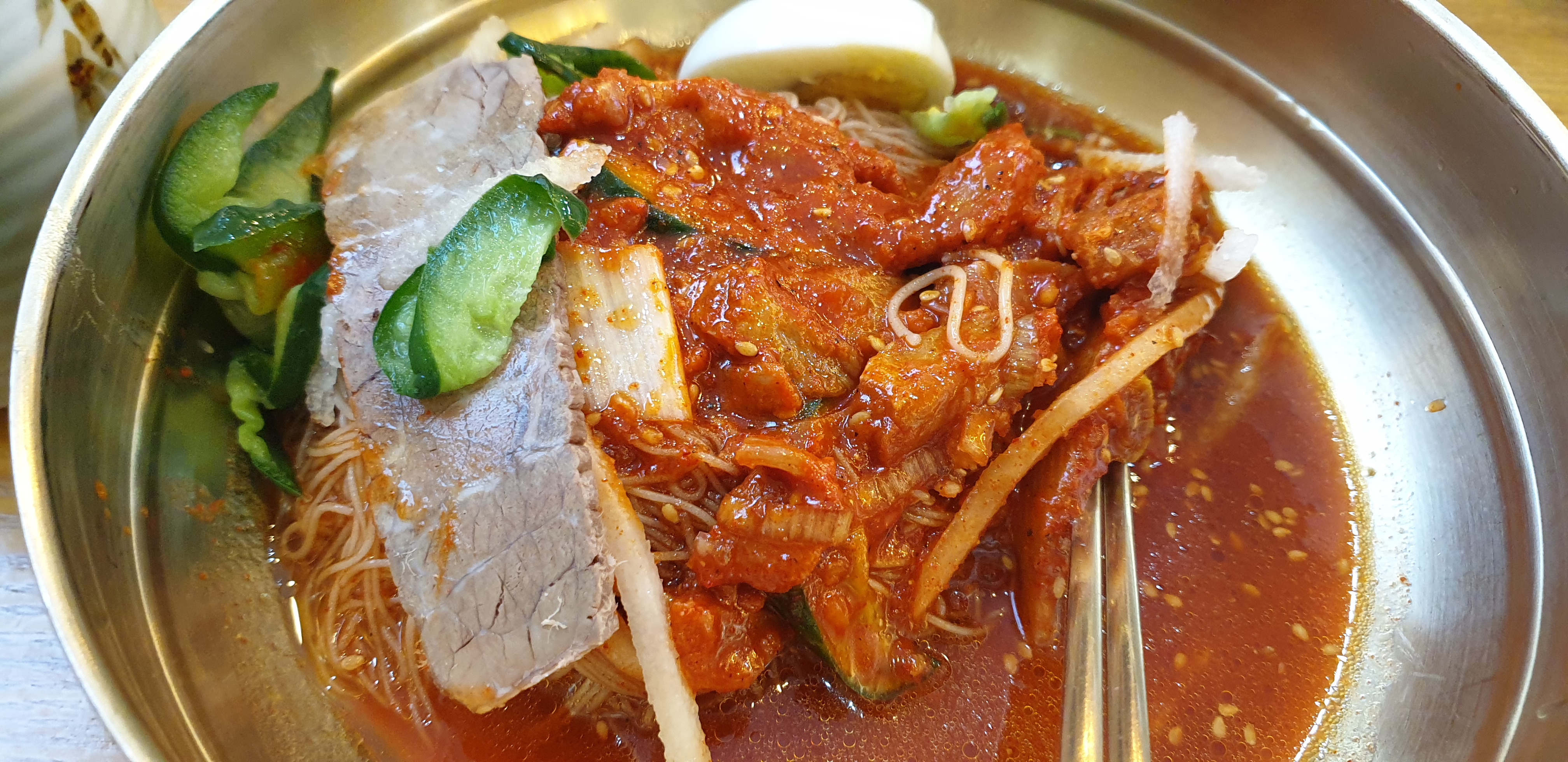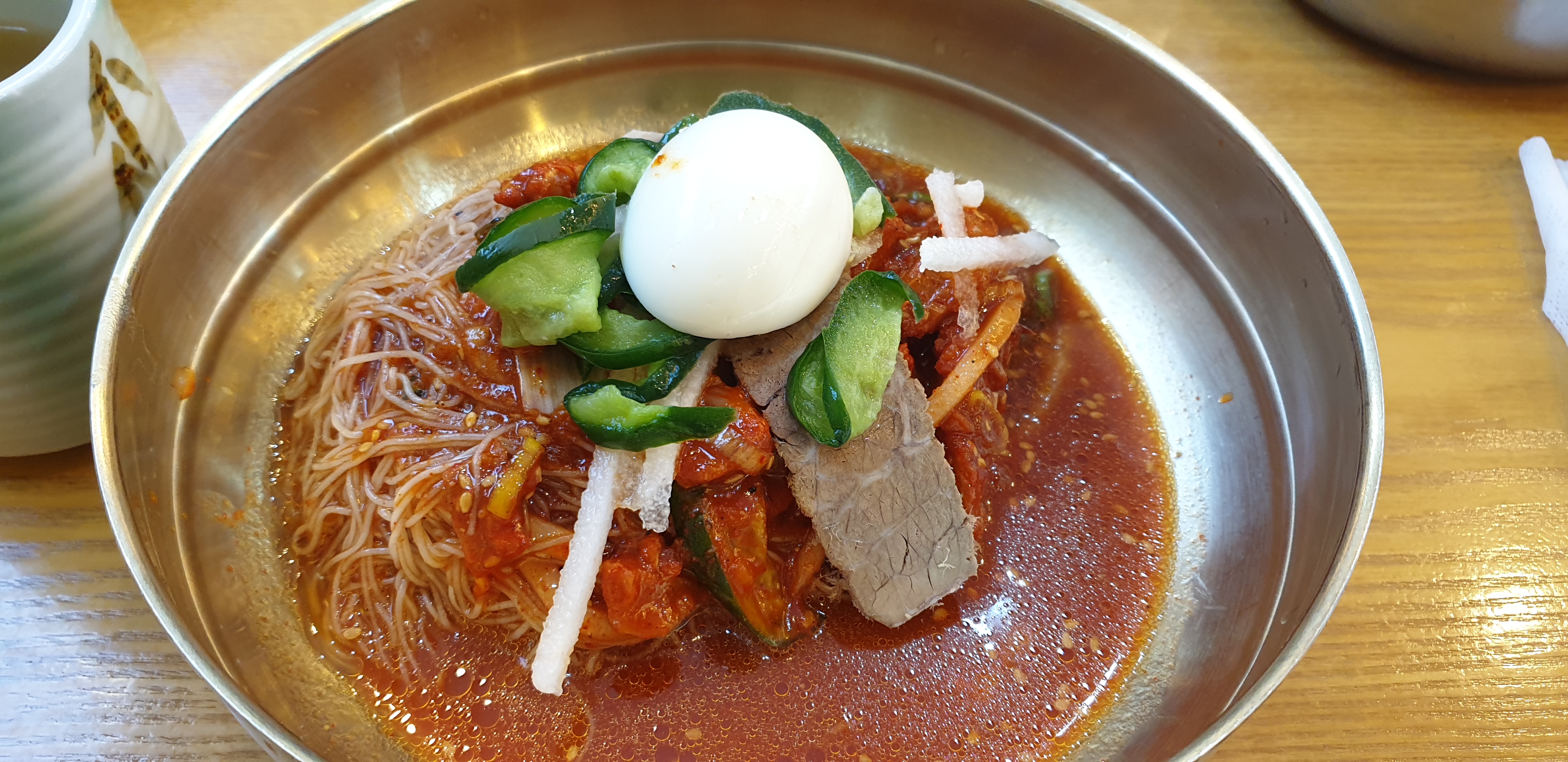 섞어 냉면은 일반 비빔냉면 고명과 회냉면이 섞였다고 해서 주문했는데 흠... 저 고기 하나가 비빔냉면의 역할로 등장한 거 같은데... 다음에 먹을 일 있으면 섞어는 안 먹는 걸로... 비빔이나 회냉면이 더 나을 것 같습니다.
