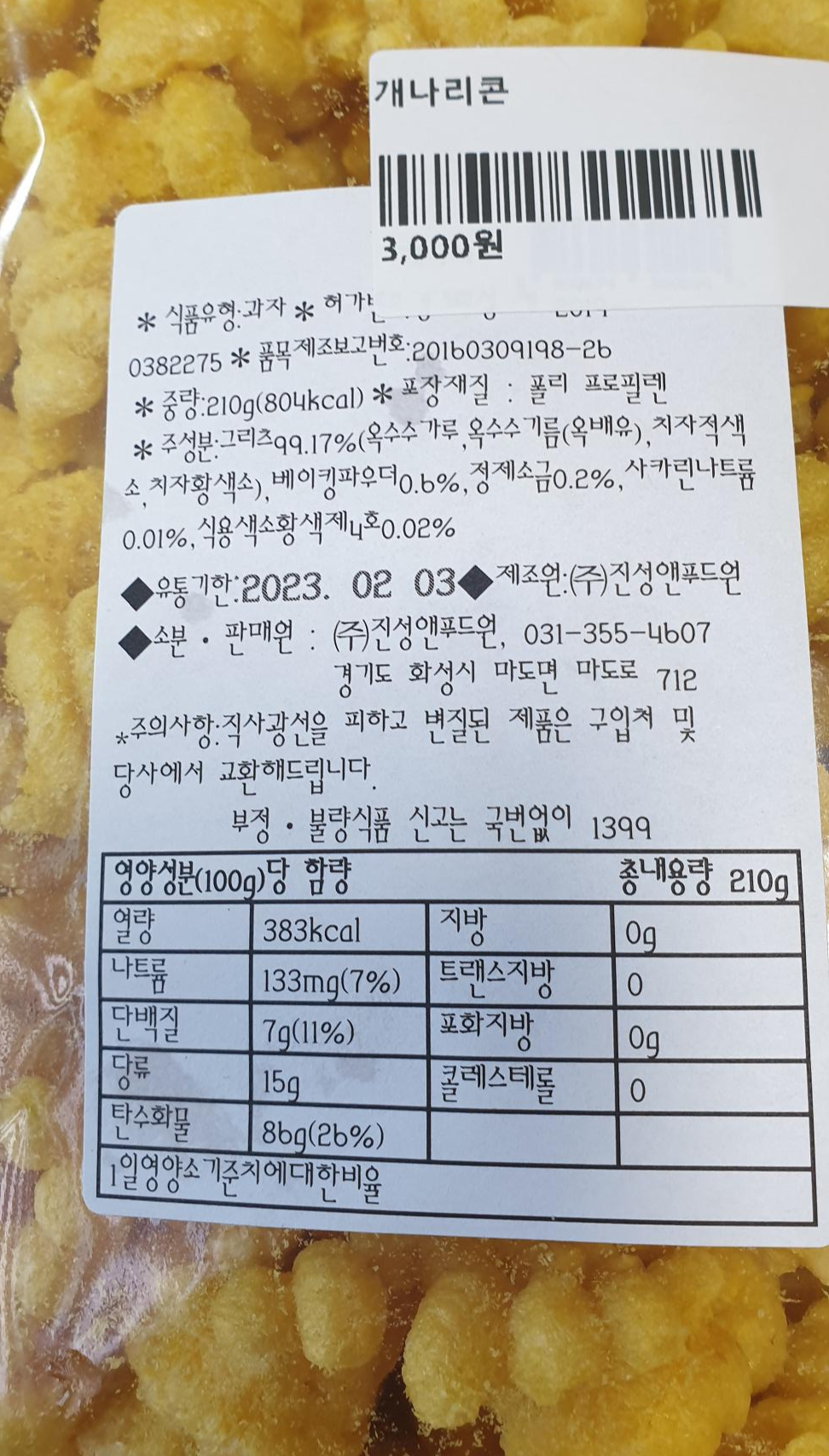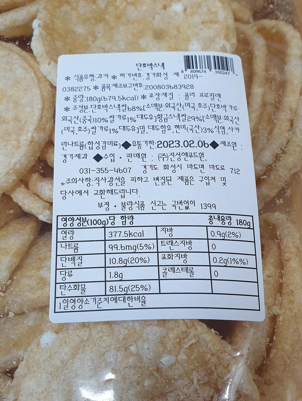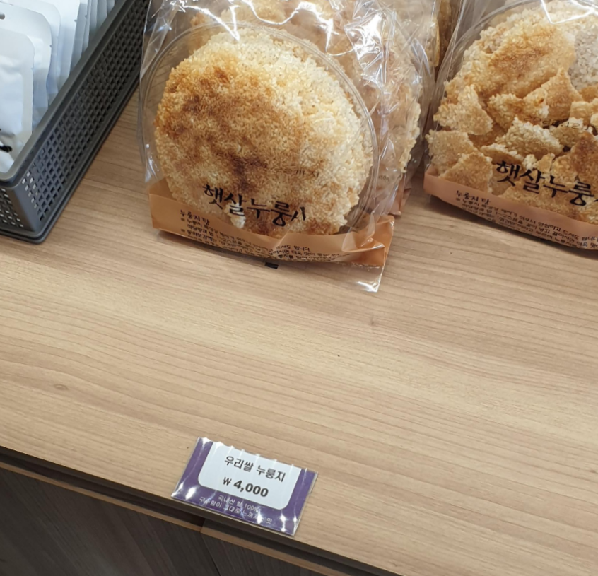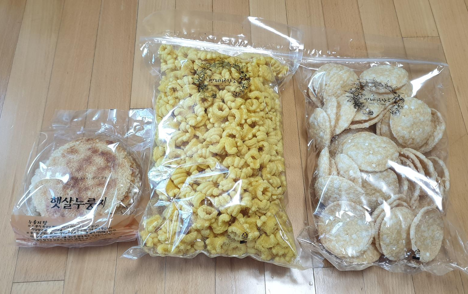 저는 단호박 뻥튀기(3500원)와 개나리콘(3000원) 그리고 우리 쌀 누룽지(4000원)를 구매했습니다.