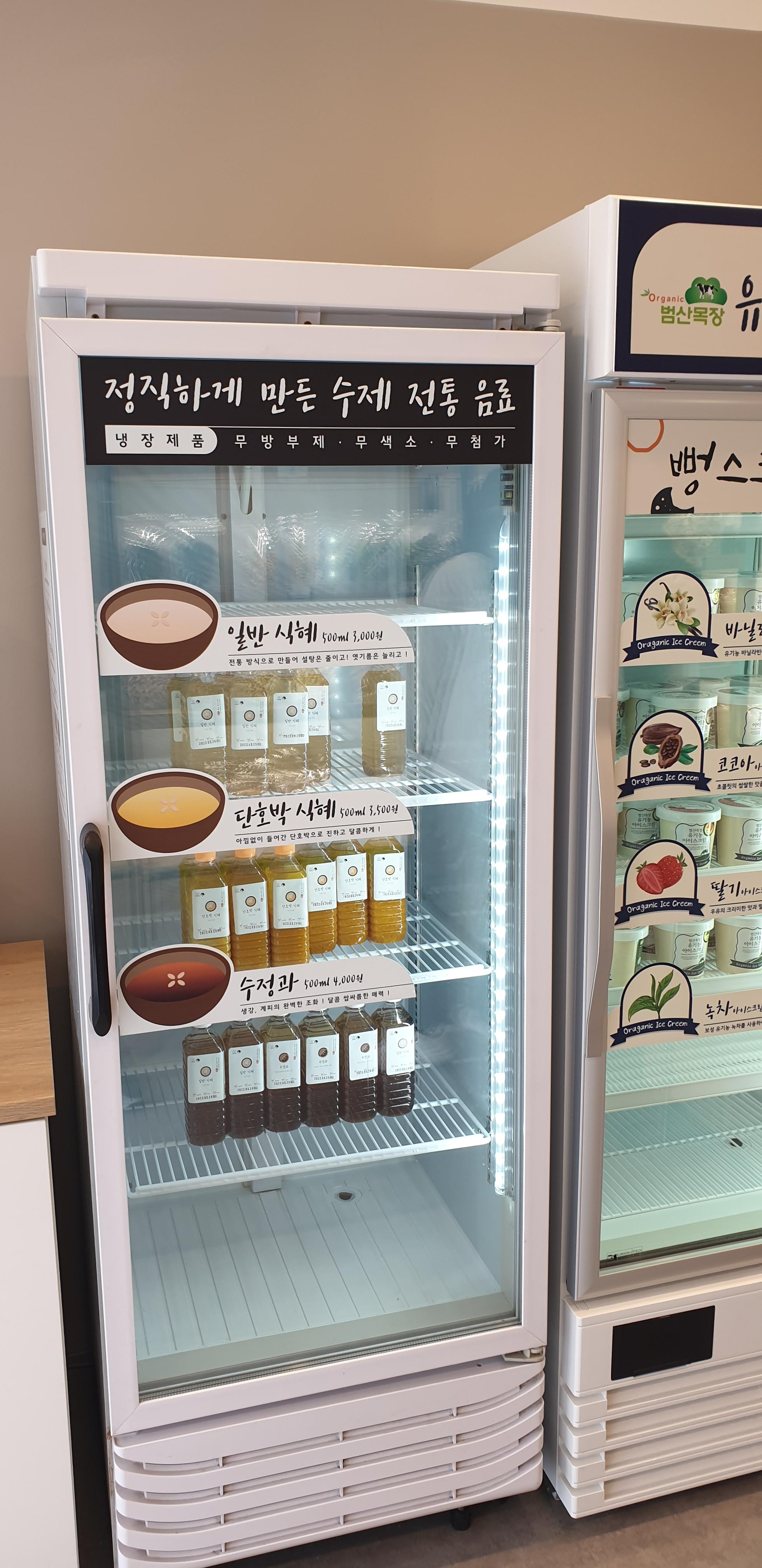 식혜와 수정과도 팔고 있고 계산은 키오스크로 셀프 계산을 하는 형식이였습니다.