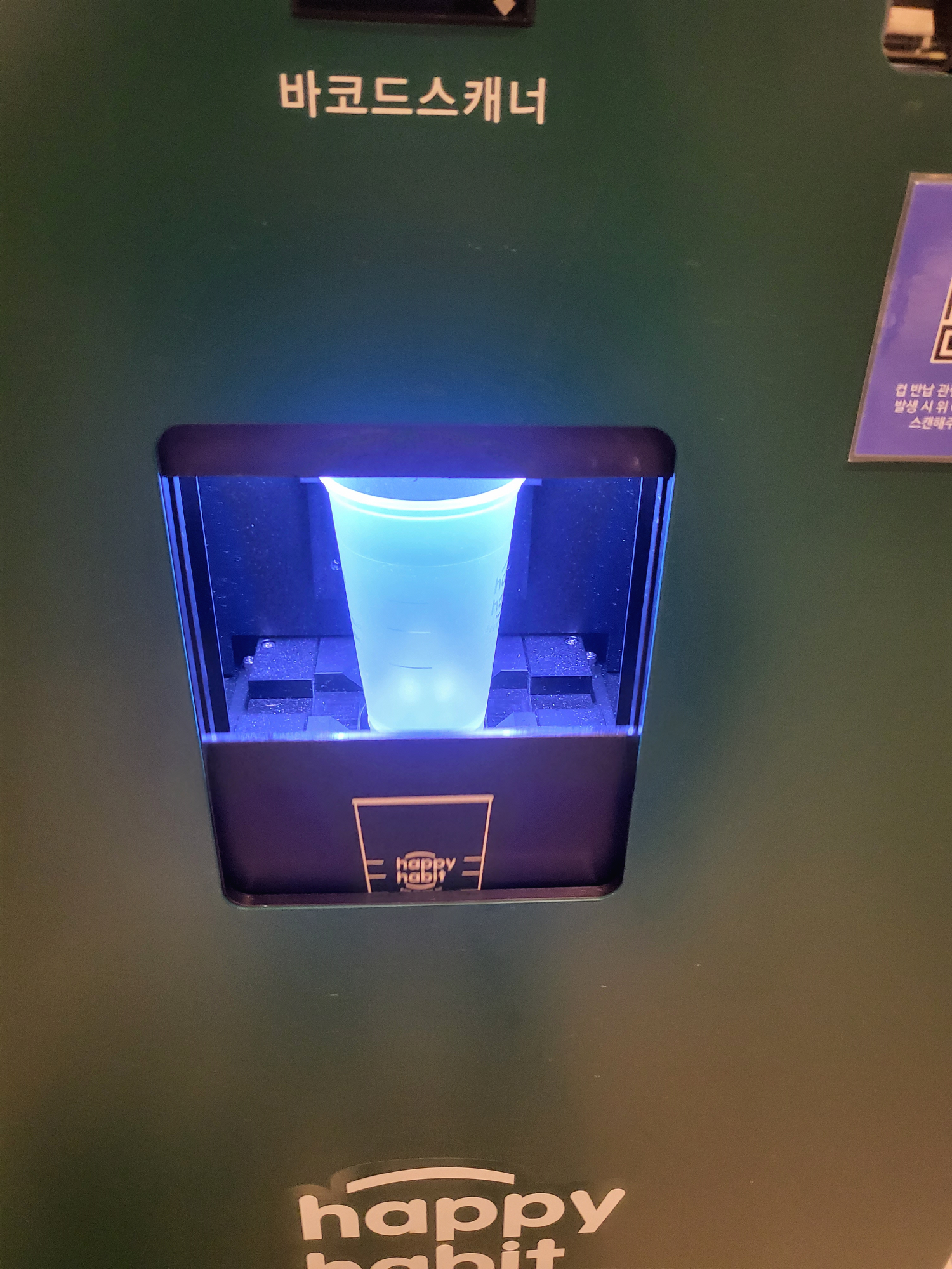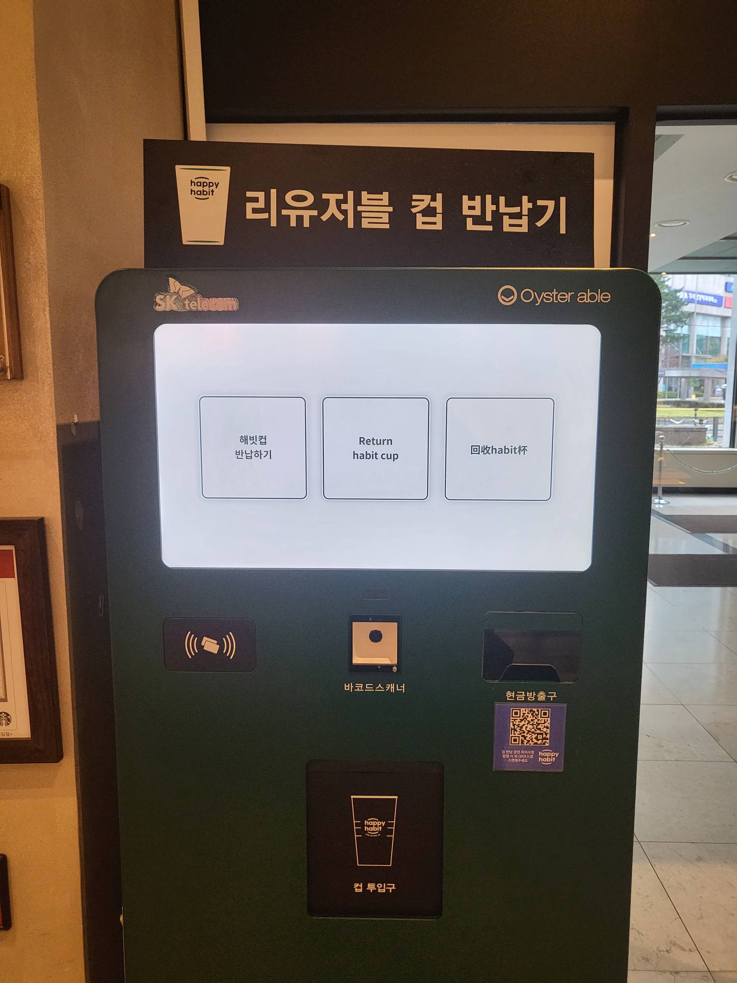 매장 안에 있는 리유저블 컵 반납기가 있습니다.