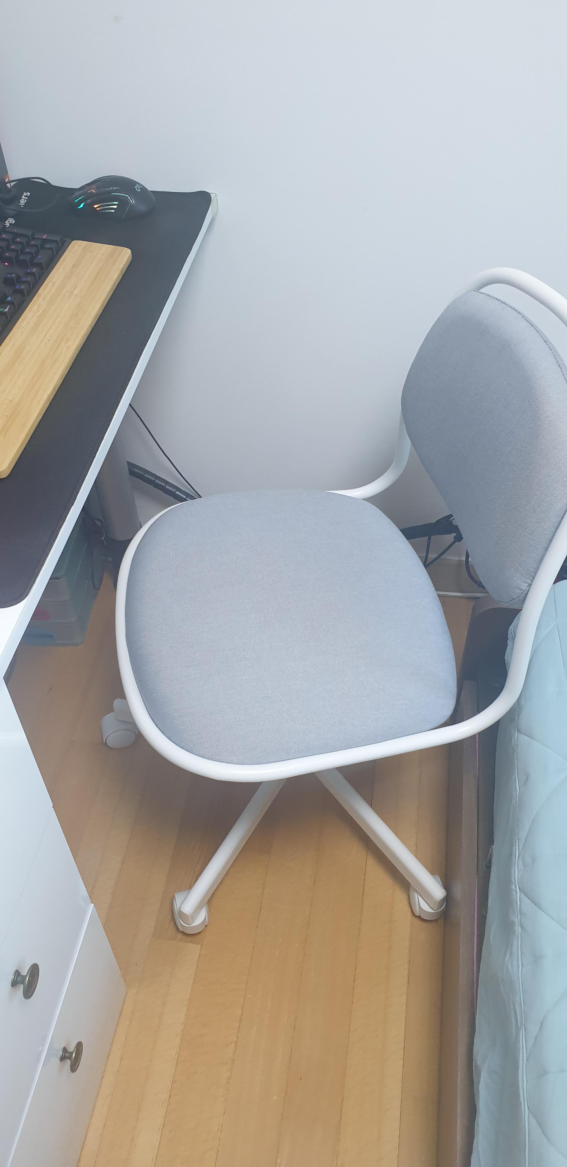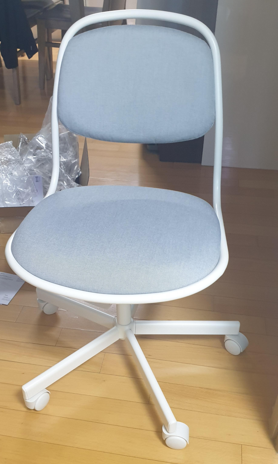 완성을 해보니 좁은 제 컴퓨터 의자로 딱 맞는 크기였습니다. 다만 바퀴가 의도한 건지 뻑뻑하더군요. 바퀴 안 달린 걸로 샀어도 됐을 것 같은 기분... 의자가 가벼워서 그냥 밀리는데 약간 마트 카트 바퀴 반대로 미는 느낌이 드는 것 같습니다.